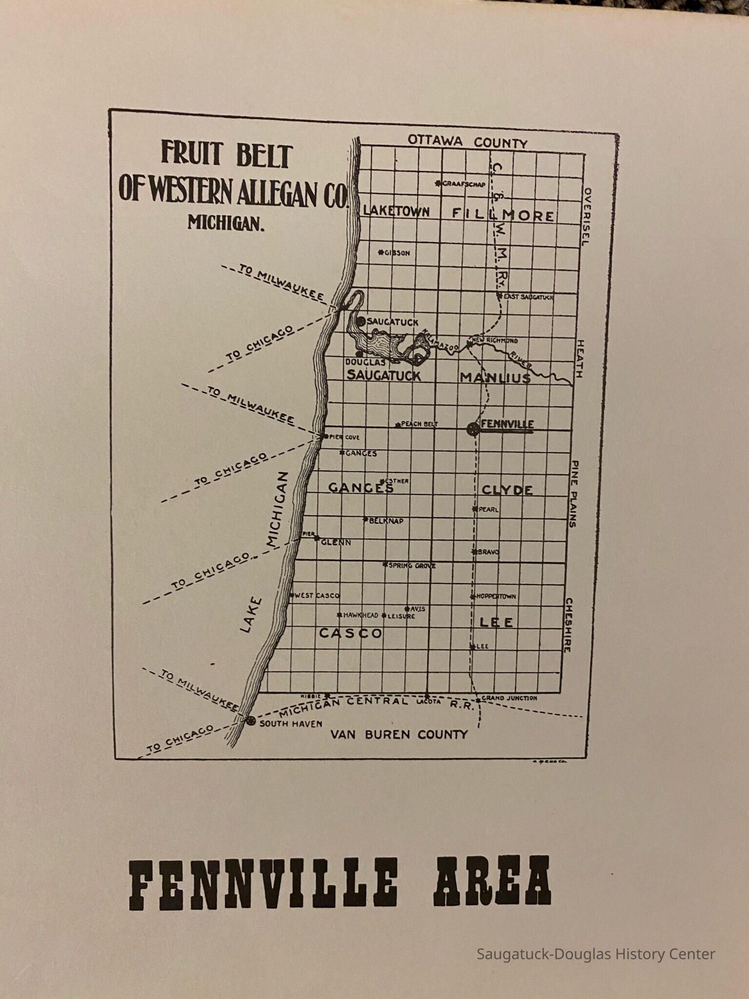 A collection of historical stories for a group of towns and villages in the Fennville area. Richmond, Manlius, Pier Cove, Peach Belt, Plummerville, Mack's Landing, Glenn, Pearl, Bravo, Ganges, Campania, Hutchins Lake, Pullman, Esther, Avis, Bellnap, Hawkhead, Leisure, Spring Grove, West Casco,