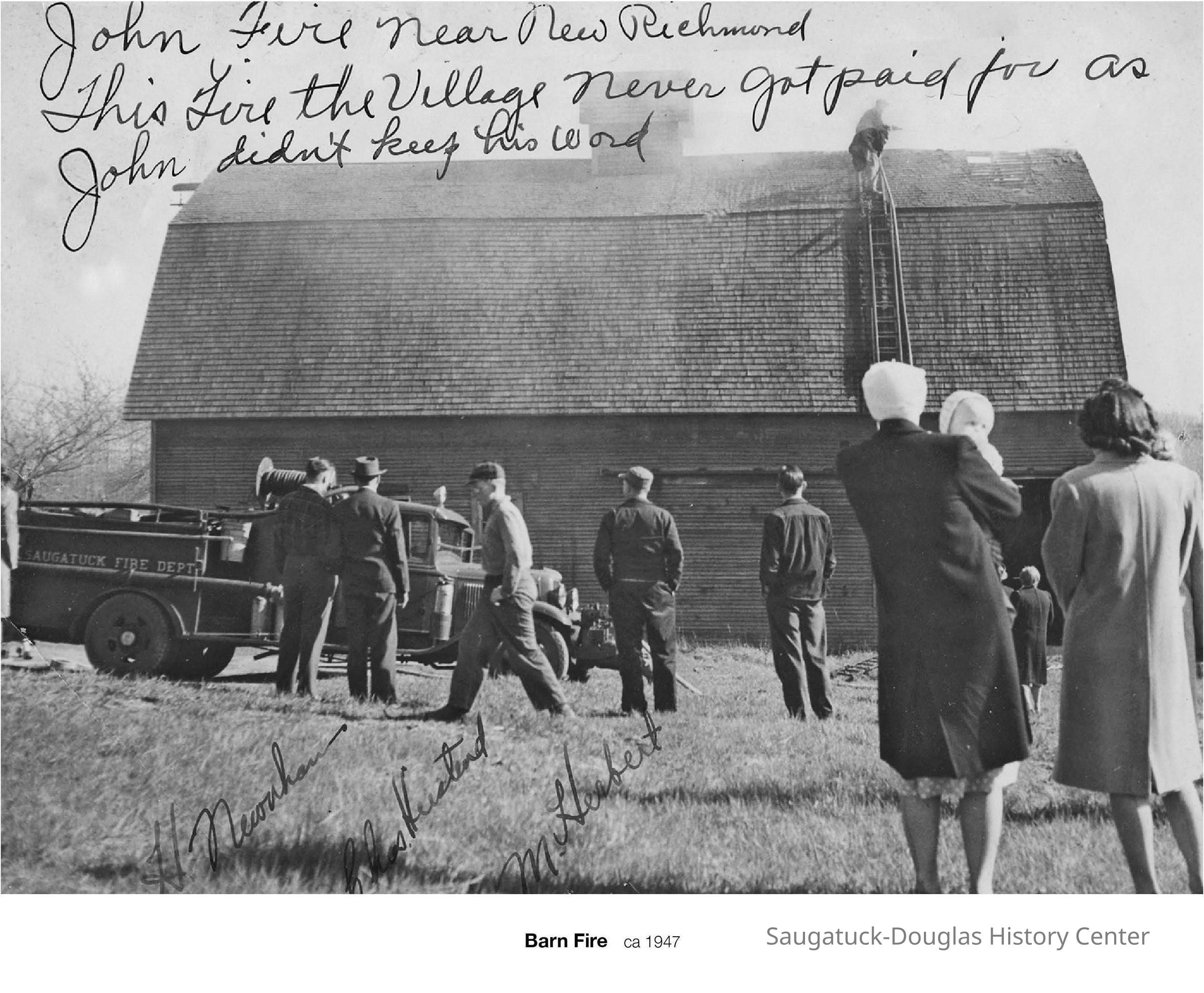 Saugatuck Township Fire District, Edgcomb, Morgan J. Jr. 1923-2004, Bekken, Edward "Bud" 1916-1983, Martin, Ward Burton 1908-1973, Newnham, Harry W. 1891-1970, Wilson, William J. "Bill" 1915-1992, 115 Butler/Beach Day/MI Coast/Music Box/John Ball's Restaurant/Niles Jewelery 1910