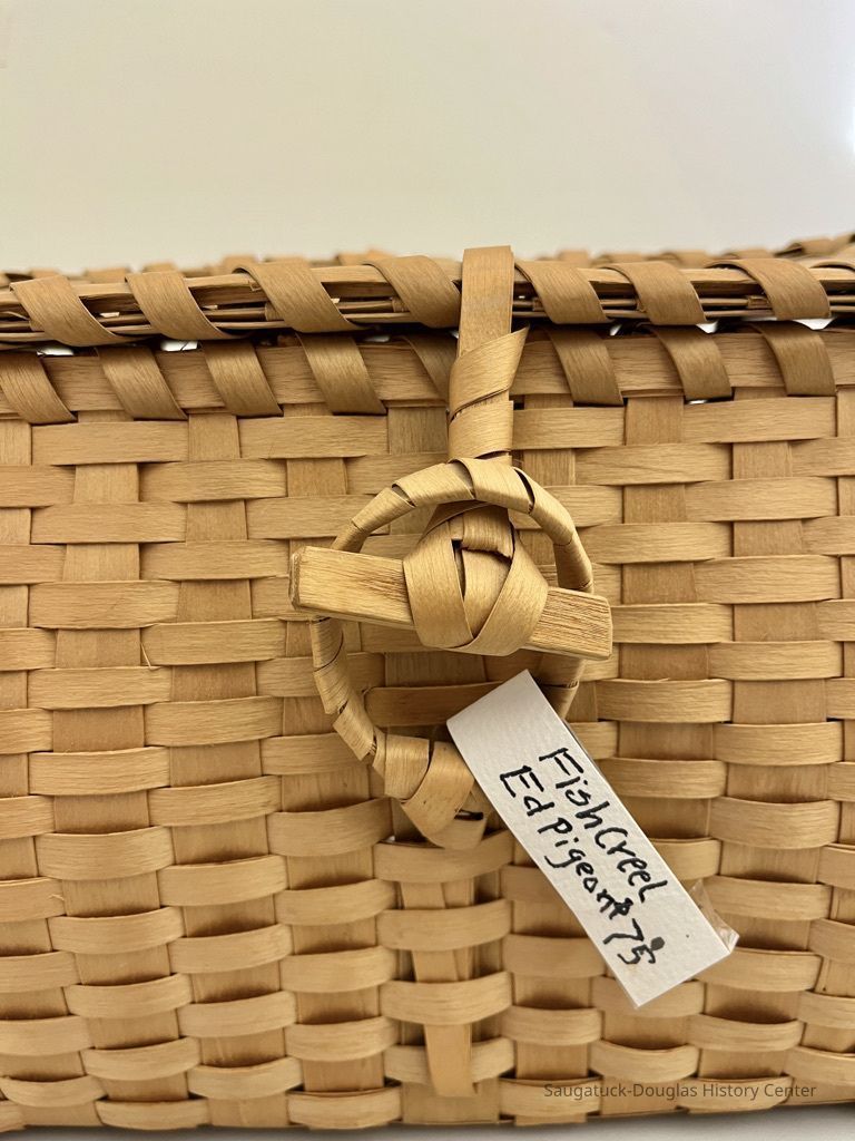 Black Ash basket handmade by Native American artist Edmund White Pigeon.