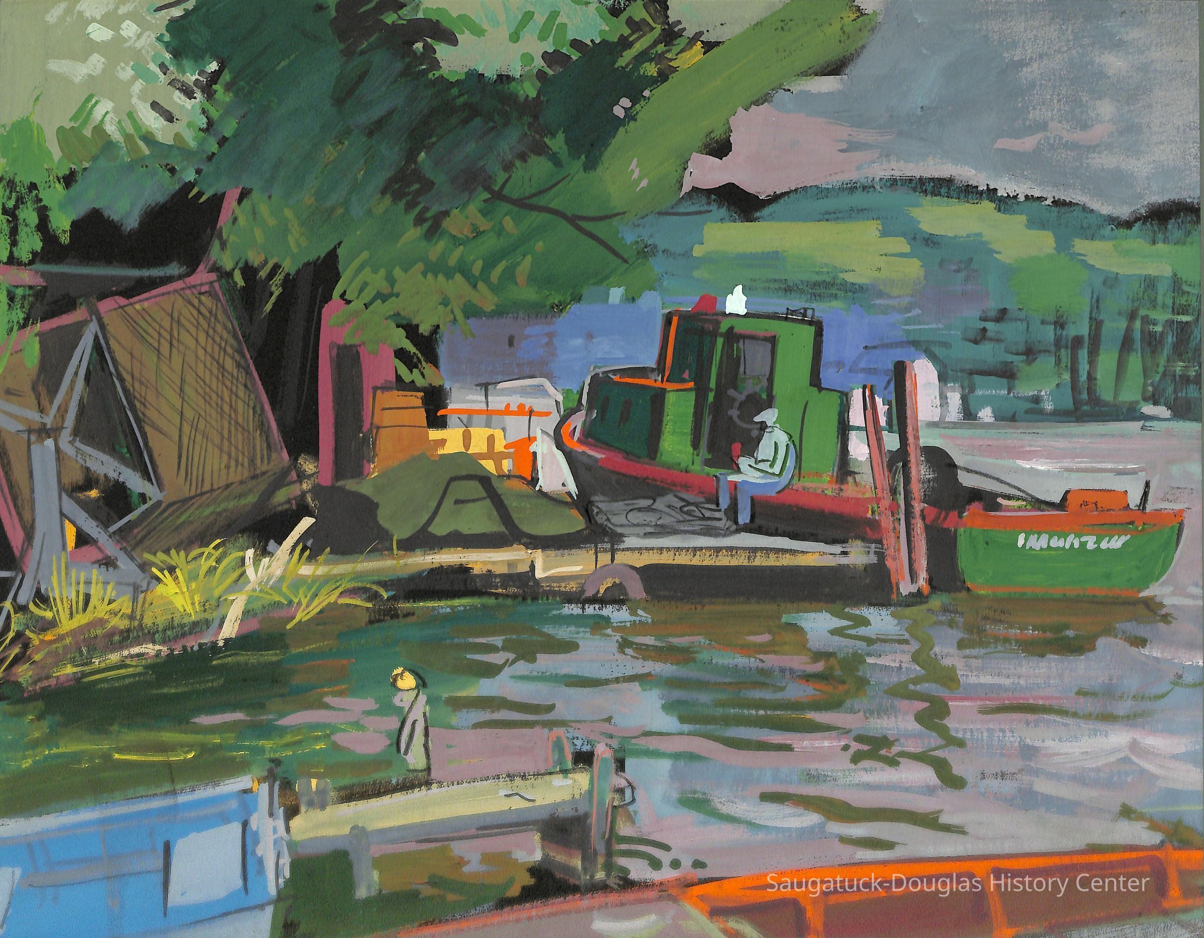 In the 1930s, fishing shacks were still common at the north end of Saugatuck. These shanties were a common subject for the Ox-Bow painters.