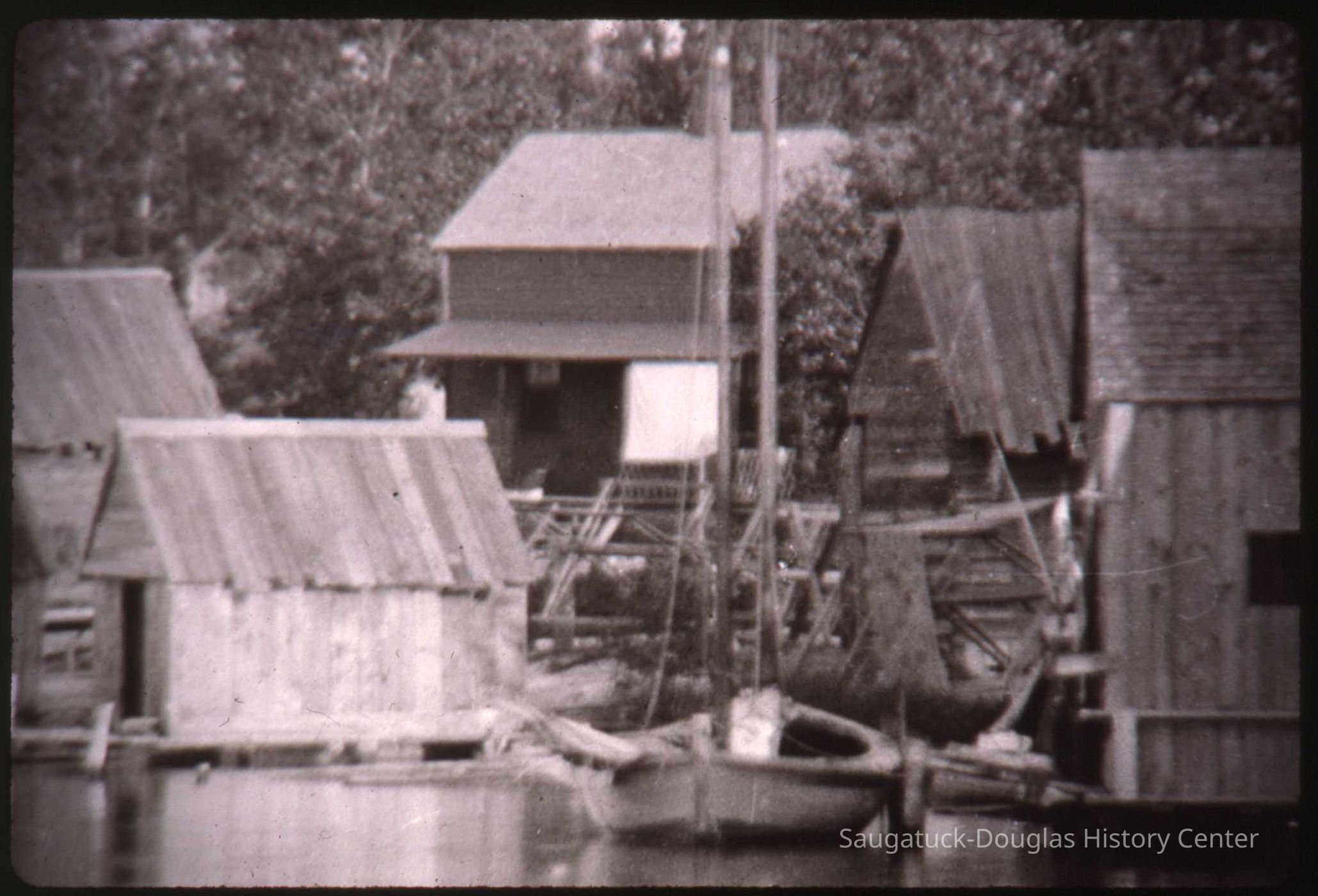Black and white slide of the fish nets at Fishtown.Photograph Details