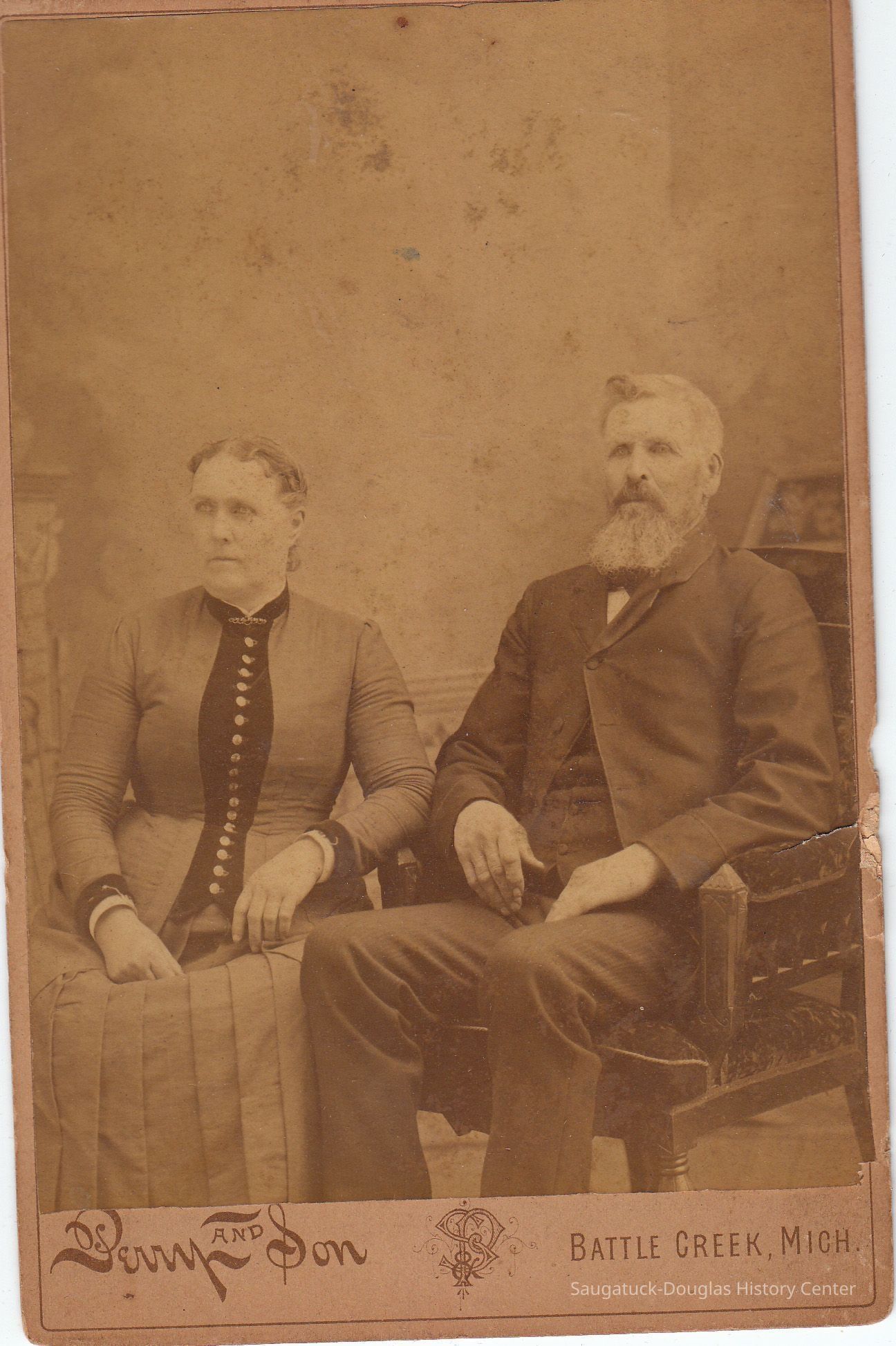 Four mounted photos from the Hames-Houtcamp family: two unknown children at Hames house, unknown couple photographed in Battle Creek; Martha andGeorge Hames; Charles and Ada Houtcamp.Photograph Details