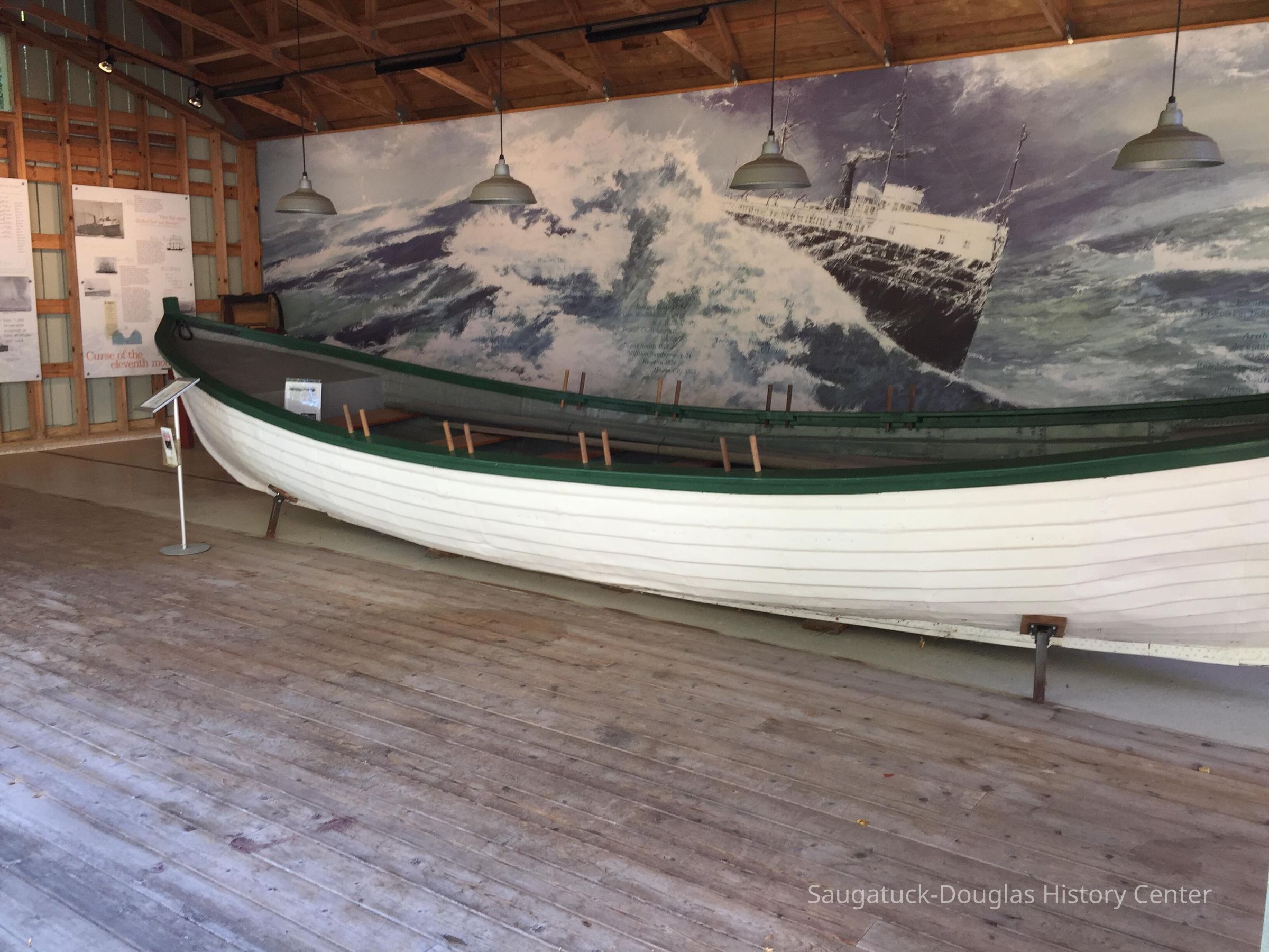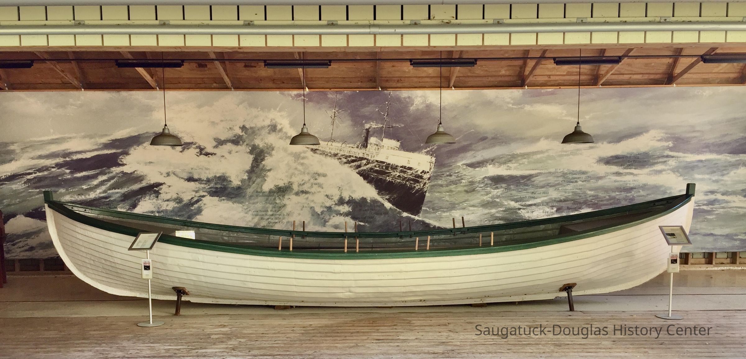 Timothy Dring, the President of the U.S. Life-Saving Service Heritage Association, recently visited the Old School House to see our Francis life-saving boat, the Gallinipper I. Mr. Dring's specialty is technical and design history of all rescue boats used by the United States Life-Saving Service/Coast Guard from the 1800s to present day. Mr. Dring confirmed that our boat is indeed one of the oldest life-saving crafts in America and is so rare because most similar boats were melted down to meet wartime needs for scrap iron. The Smithsonian, he assured us, would love to have our boat! He commended us for our restoration work and for the “stunning” display exhibit.