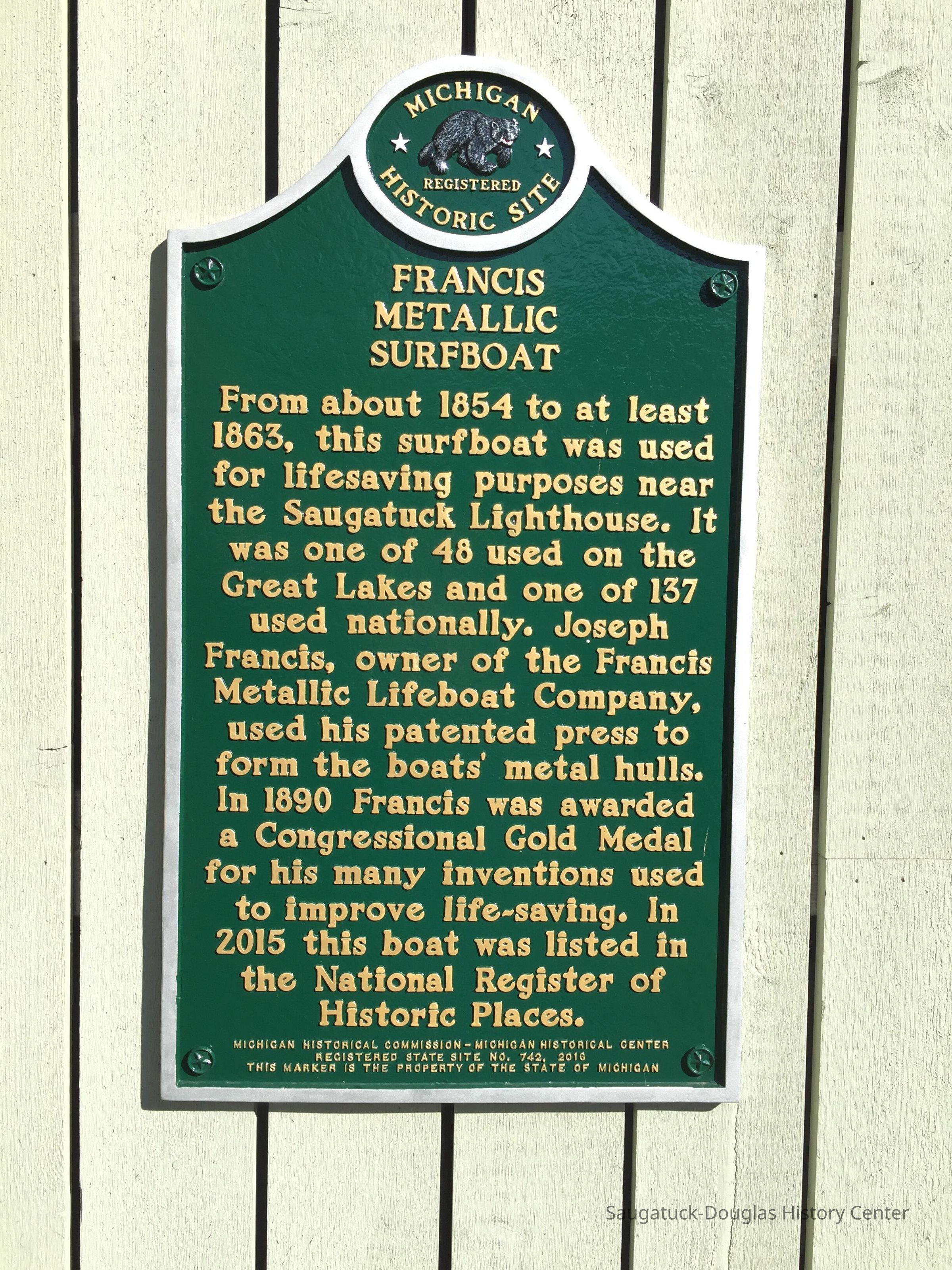 Joseph Francis, a shipbuilder, inventor, and father of the U.S. Life-Saving Service, was born in Boston in 1801. In an era of devastating shipwrecks, Francis devoted much of his life to developing equipment for rescue at sea. As a young boy, he constructed a small boat at his uncle’s shipyard, adding cork for extra buoyancy. At eighteen, he won his first design competition. In 1848, following an Act of Congress, the government sponsored the creation of life-saving facilities in New Jersey. Not surprisingly, Joseph Francis was awarded the contract. His design for lifeboats demonstrated the proper balance between weight and strength. He created stronger, lighter-weight hulls for his lifeboats by riveting together molded sheets of corrugated galvanized iron. He added air cases on either end of the boat to provide some self-righting capability. Francis’s lifeboats were used around the world from Prussia to Portugal to Canada and the U.S. On August 27, 1888, President Benjamin Harrison awarded Joseph Francis the Congressional Gold Medal for having saved “the lives of thousands.”Label