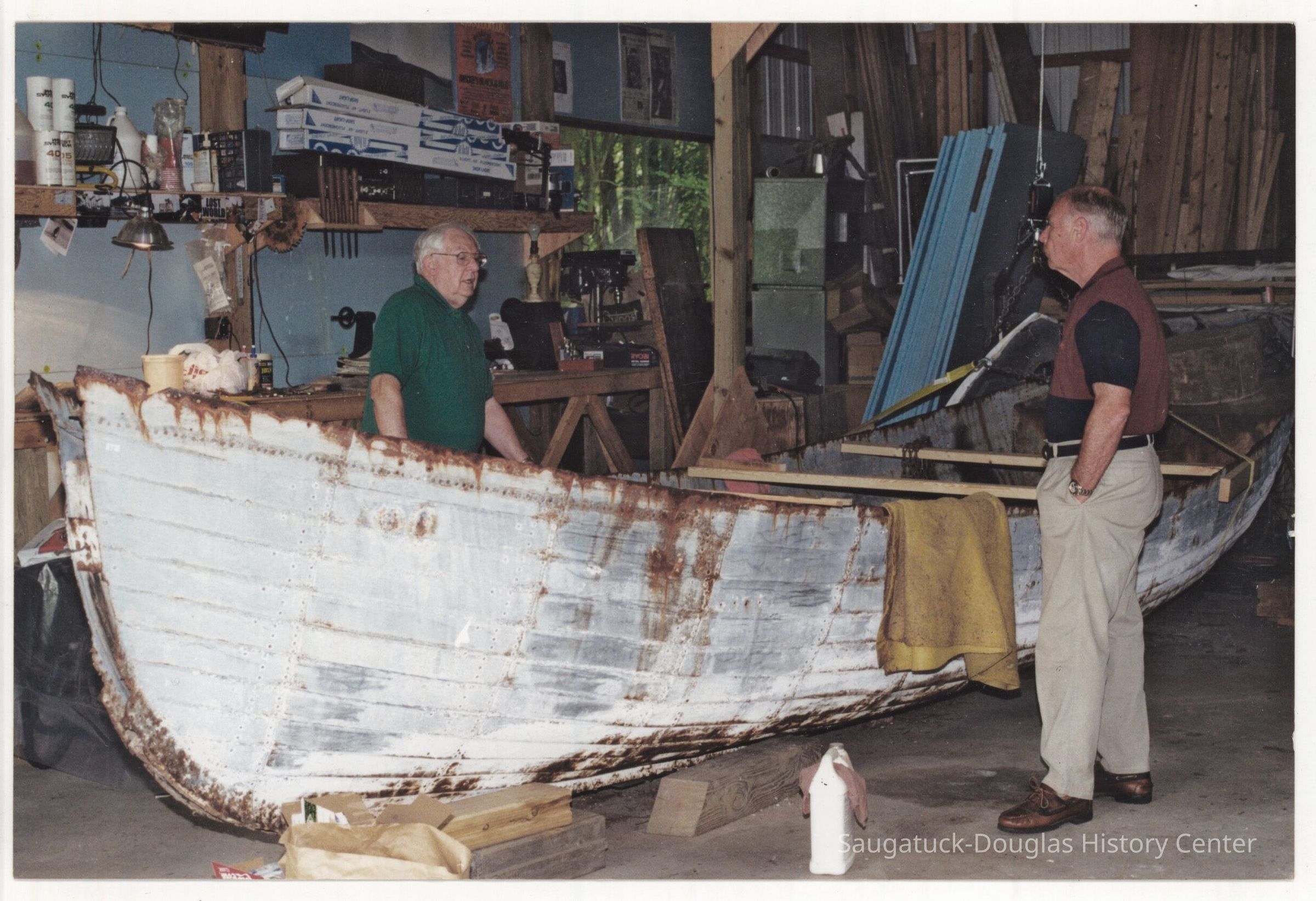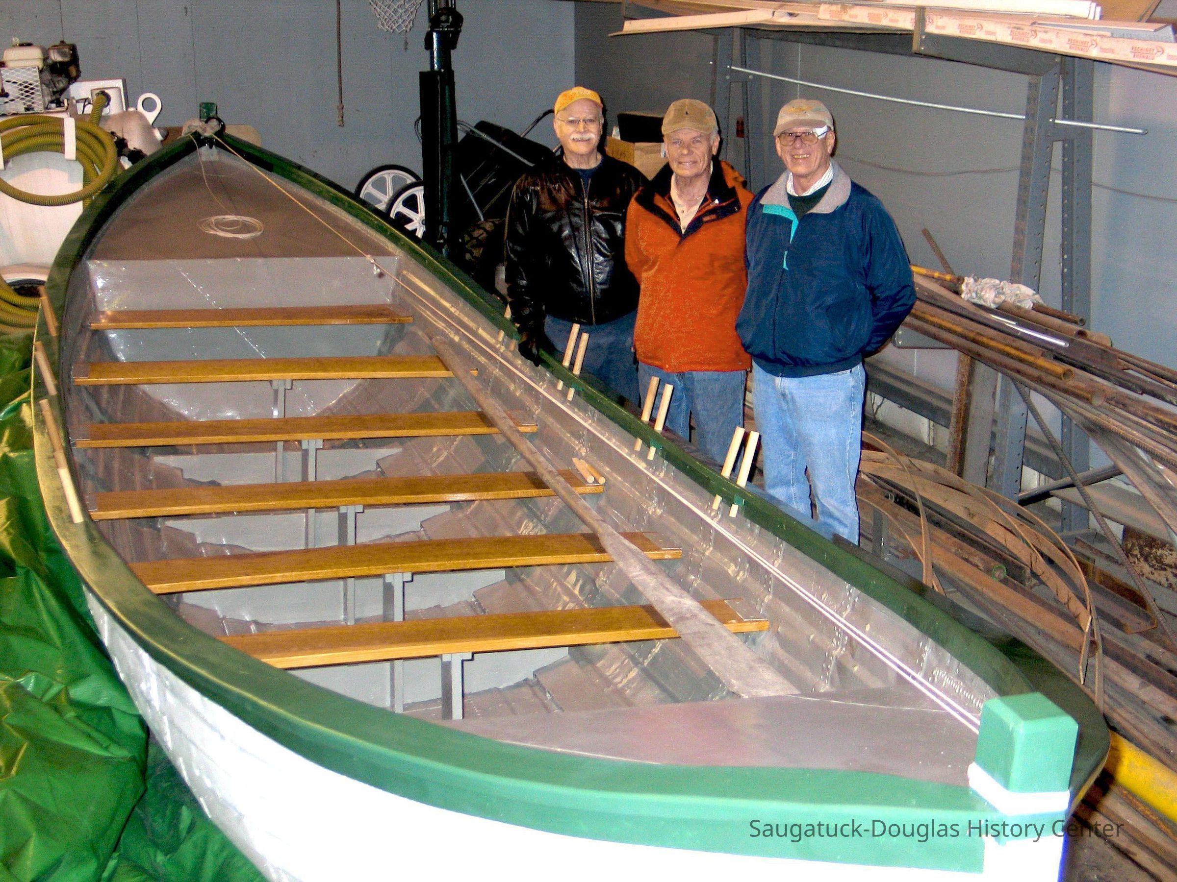 Images of the Francis Metallic Lifeboat, aka the Gallinipper, before and after restoration efforts.Photograph Details