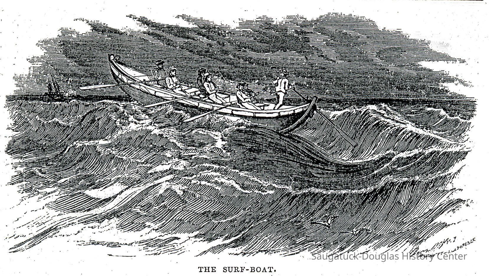 Currently being restored by members of the Saugatuck-Douglas Historical Society the Francis lifeboat- surfboat was delivered to Kalamazoo river lighthouse when Timothy S. Coates (keeper between April 1853 and March 1860) was the keeper. Research of the records of U. S. Life-Saving Service show that the U. S. government purchased and delivered a total of 48 of these boats to Great Lakes locations about 1854.