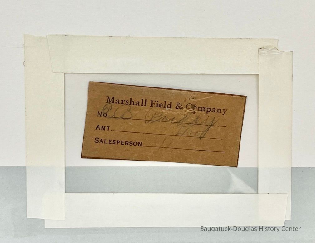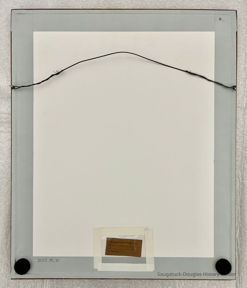 Attached to the back of the frame is a pocket containing a label from Marshall Field & Company that was likely attached to the work's original backing paper.Collection