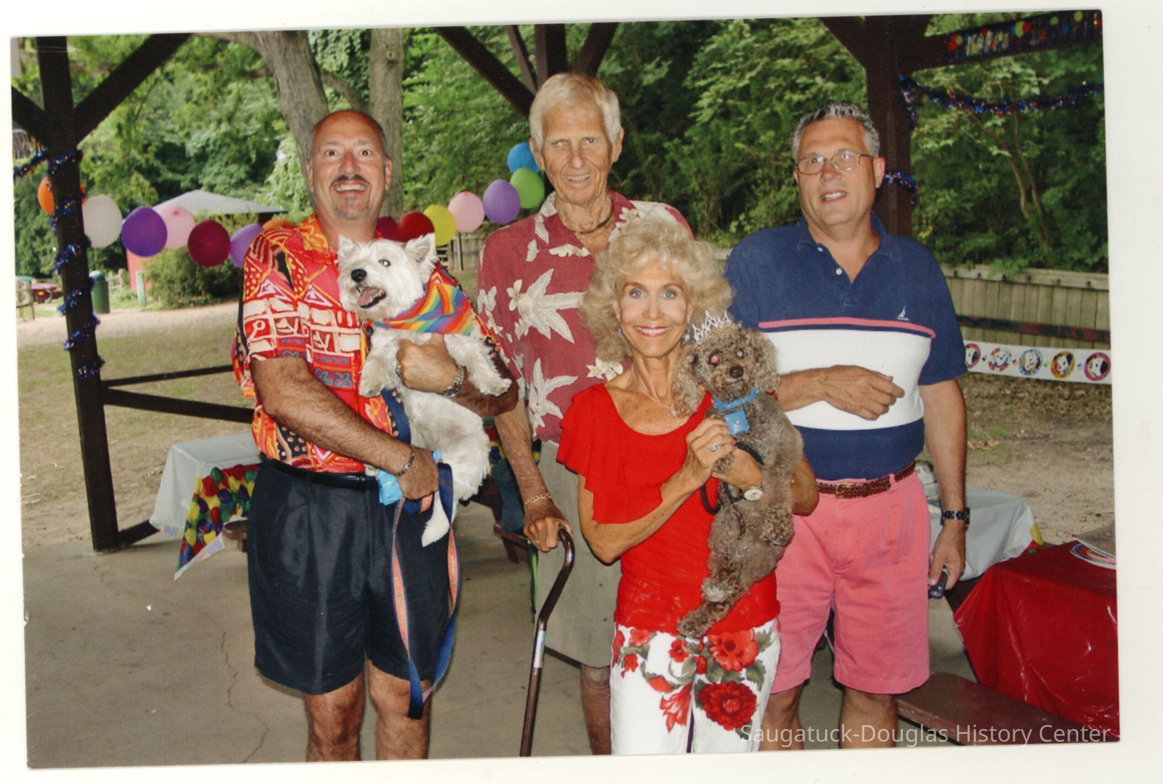 Photos and 33mm negatives from at least two dog birthday parties organized by Nicki Gallas at the Mt. Baldhead picnic pavilion. One set of photos is date stamped 8-20-99.Photograph Details
