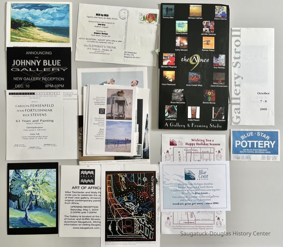 Jim Schmiechen and Ken Carls collection of postcards they have received from local art galleries including:
