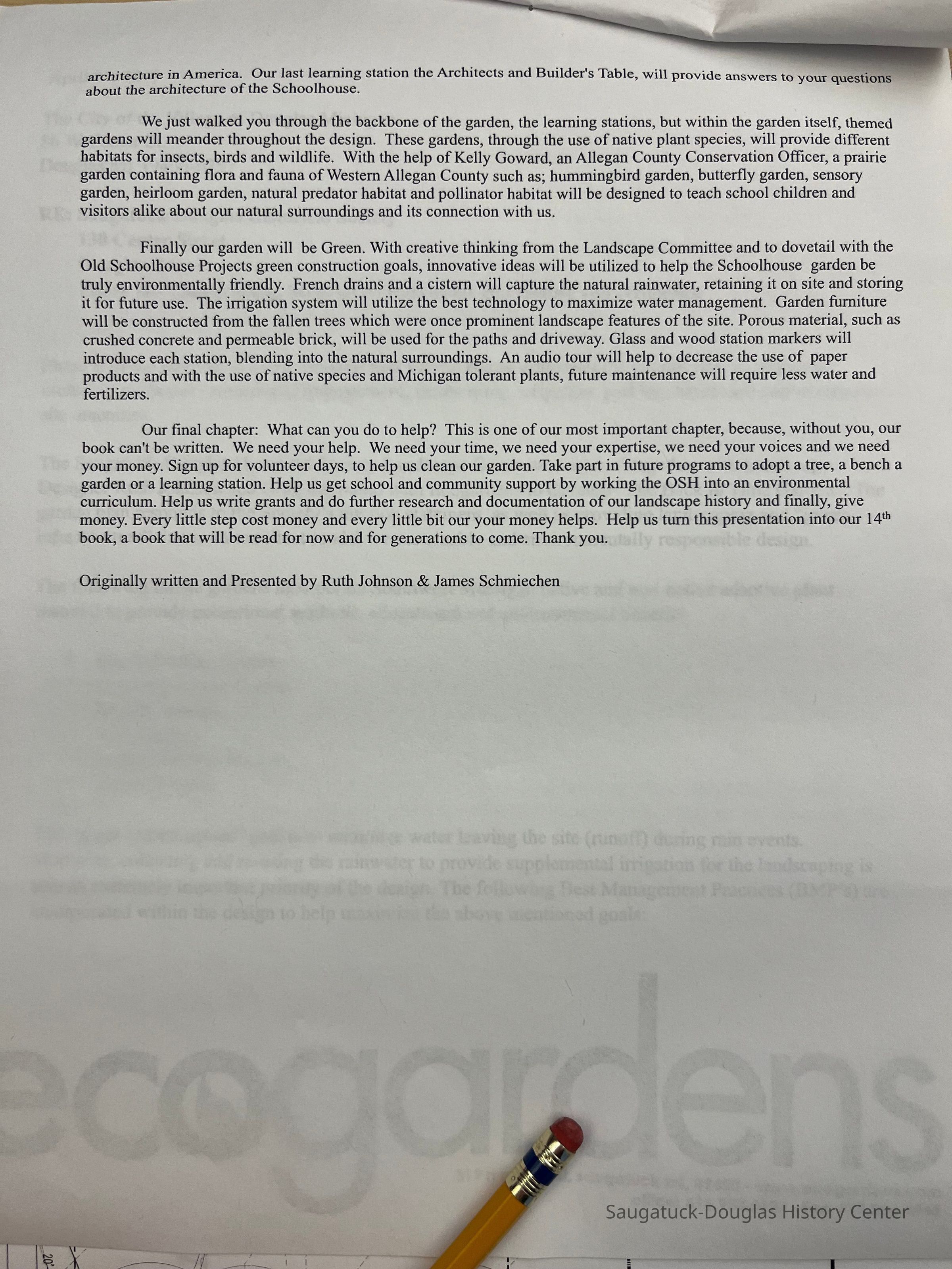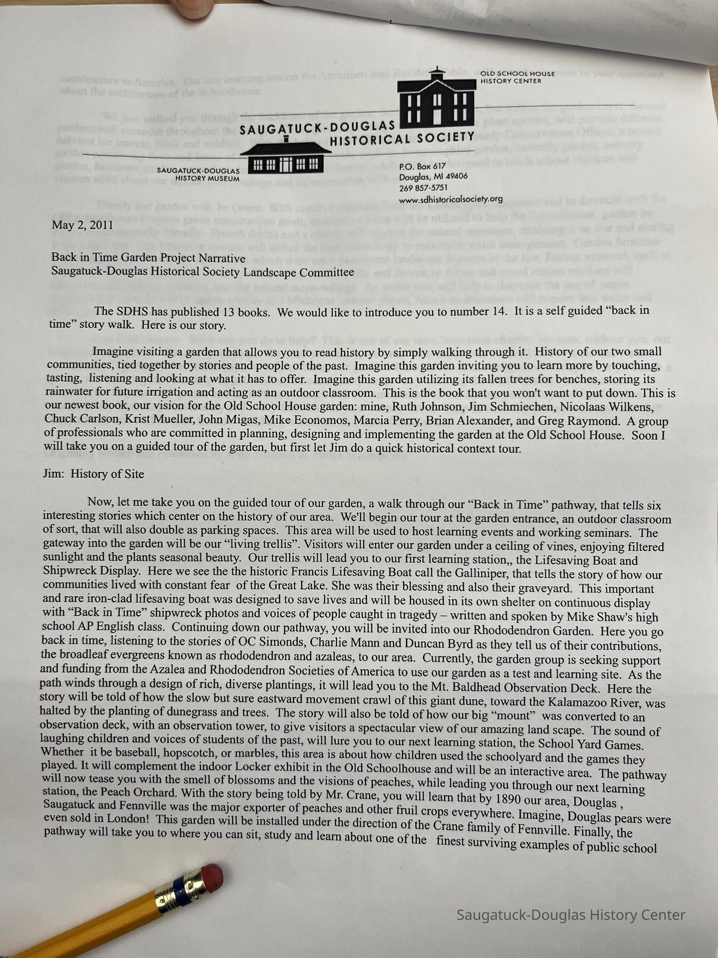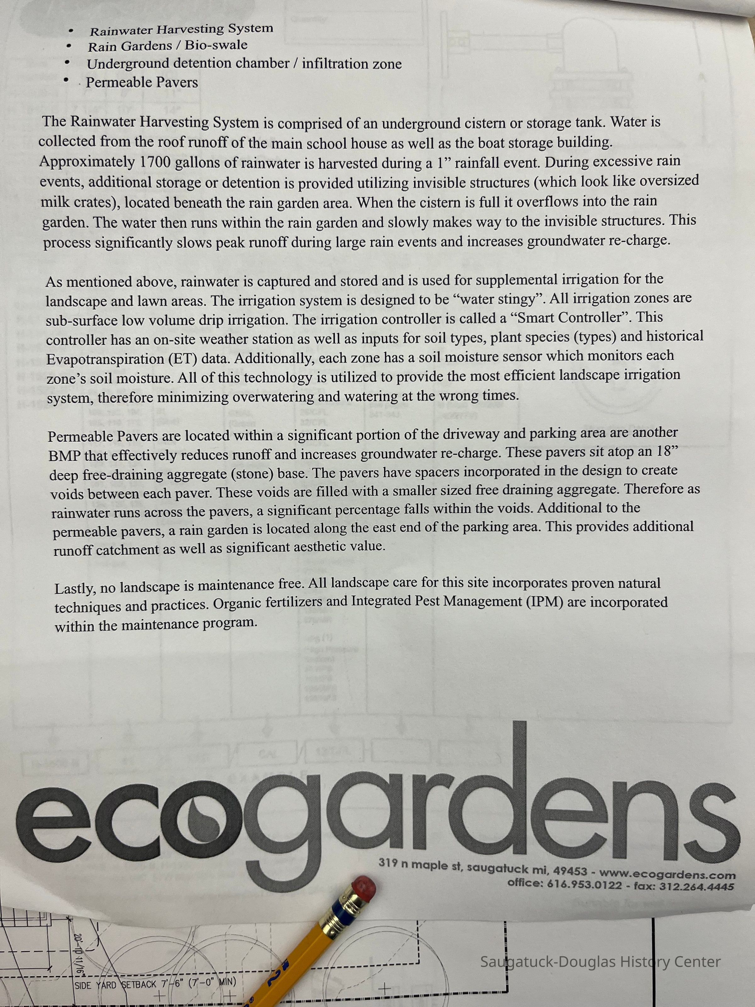 Attached to 2016.03.10.a is a copy of the application to the Village of Douglas for approval of the plan. This includes the 2-page application letter and additional “narrative”.Collection