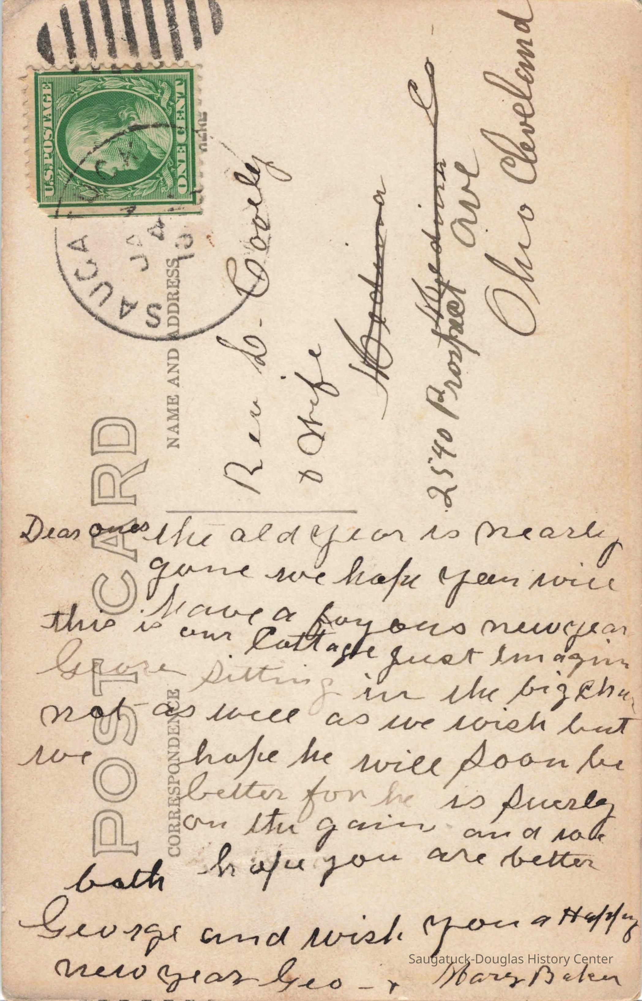 Included with this entry is a digital image of a real photo postcard sent by Mary Baker with an image of their cottage and mention of a big chair from the David V. Tinder collection at U. of Michigan.Photograph Details
