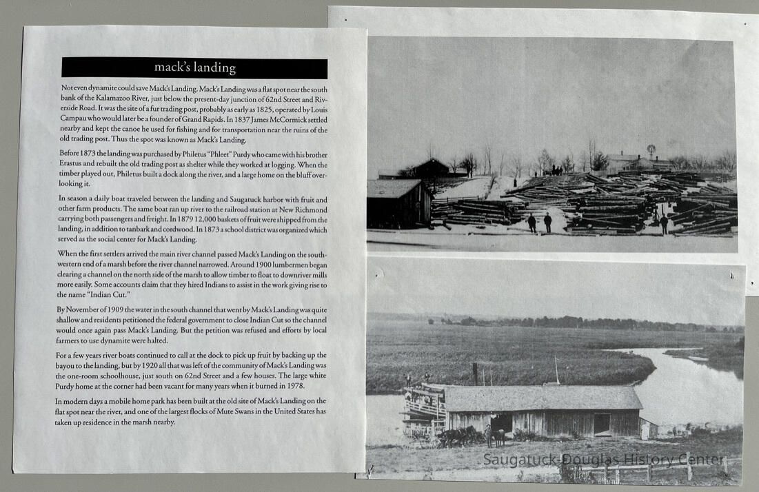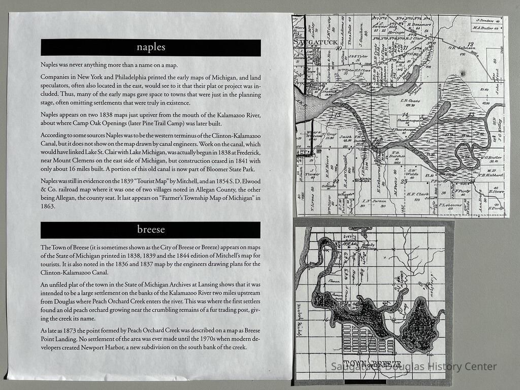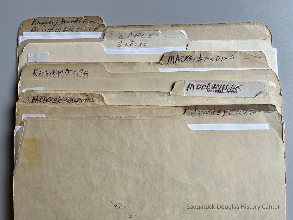 Research materials for the SDHS's 2000 museum exhibit and book "Lost and Found: Ghost Towns of the Saugatuck Area" exhibit.