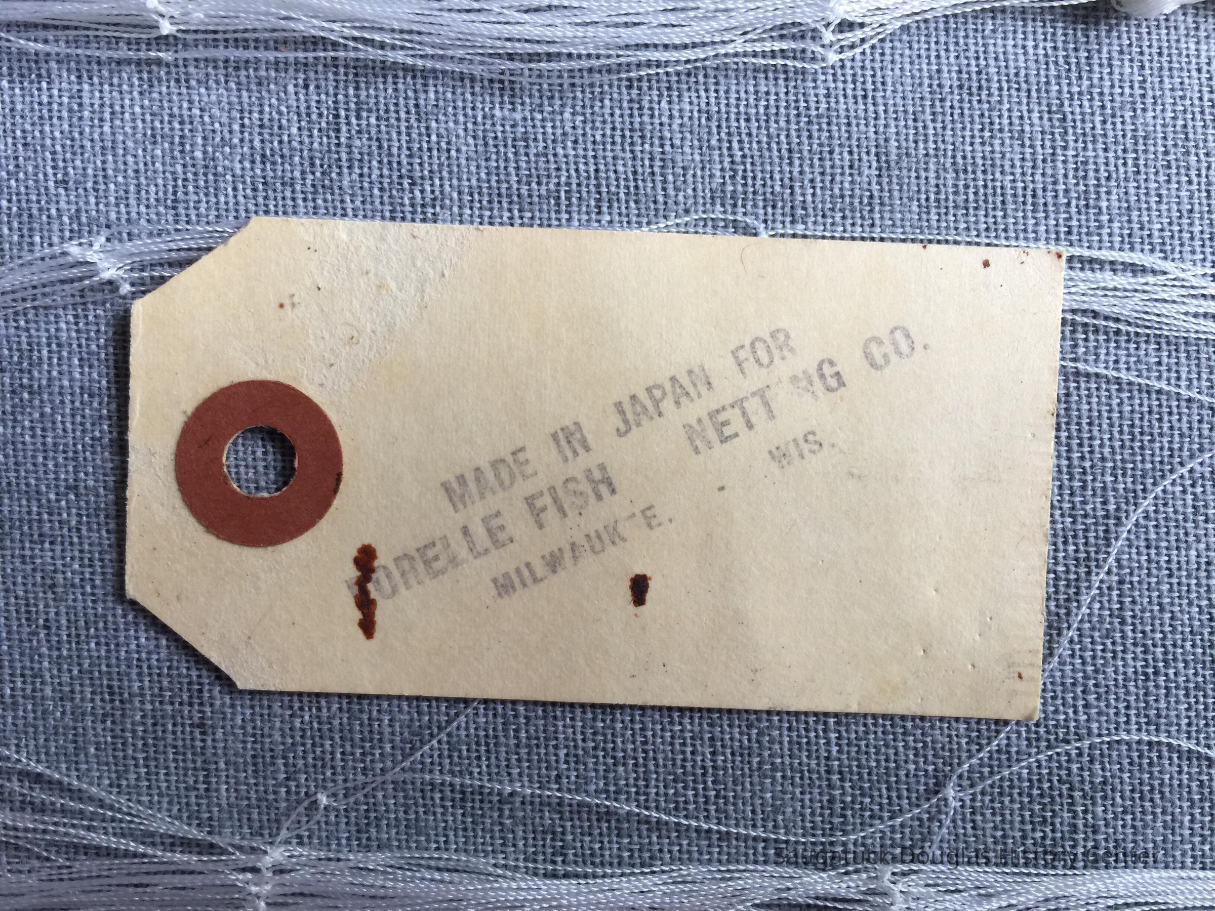 Found in the shed behind Demmy Demerest's home. The netting was balled in brown paper with no marking. Two tags were tucked in the bundle but were not attached to the netting. Melt test proves that the netting is of a synthetic fiber. The entire ball of netting is packed in the Shanty box in the SDHC storage unit on the Blue Star Highway by Sally Winthers in June 2021.Create Date