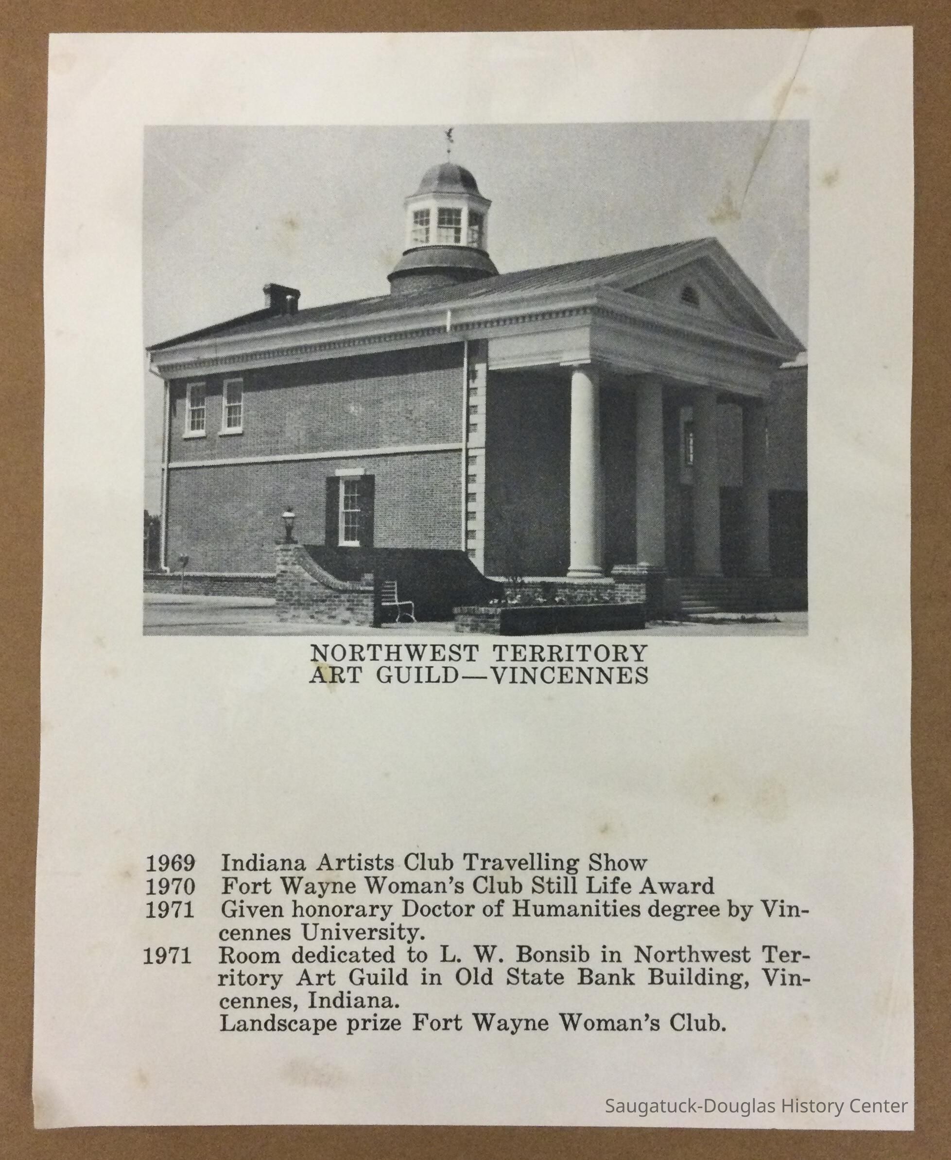 Bonsib was active as a painter and teacher. He earned his AB Degree from Indiana University in 1916 and in 1971 was awarded an honorary doctorate by Vincennes University.