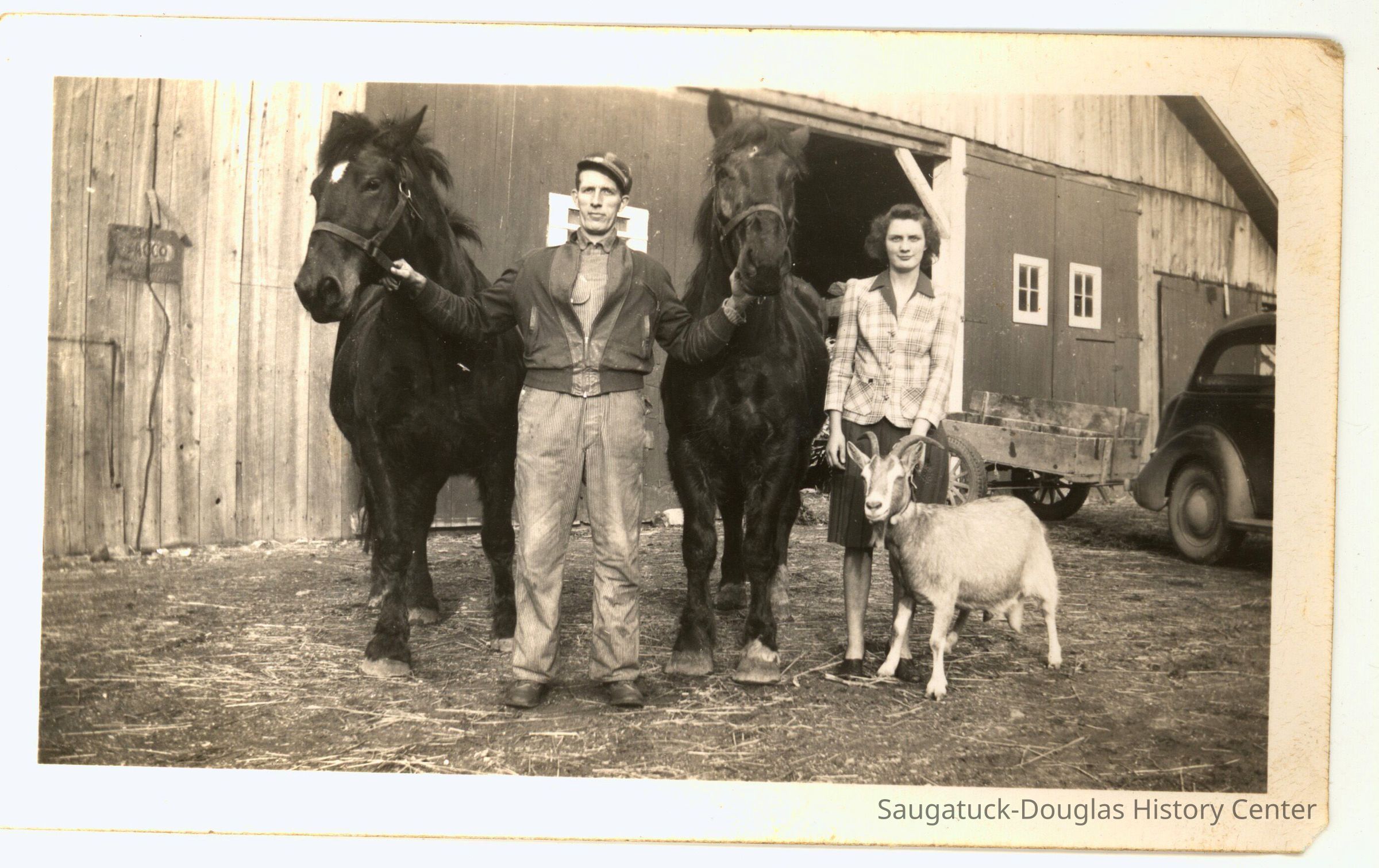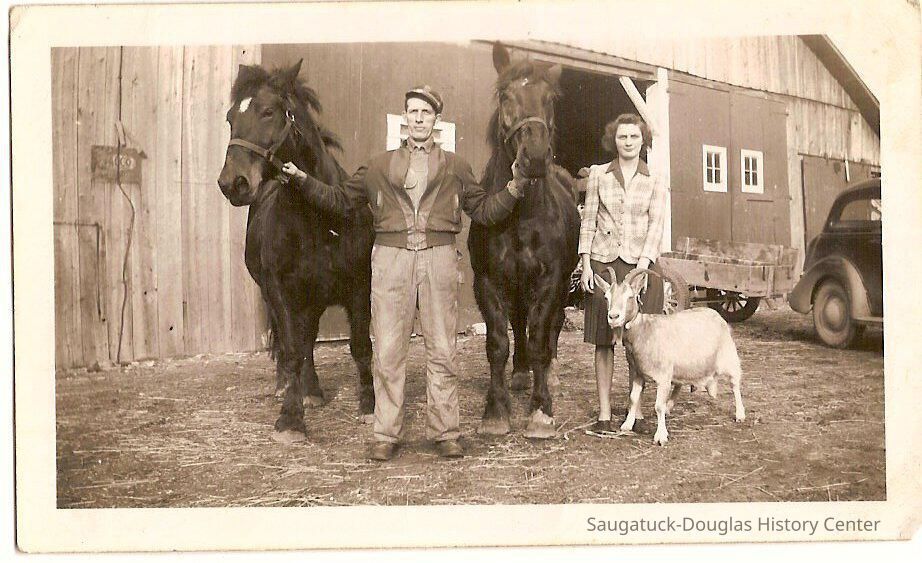 Goldie and her brother Gerrit with horses and goat. 1949