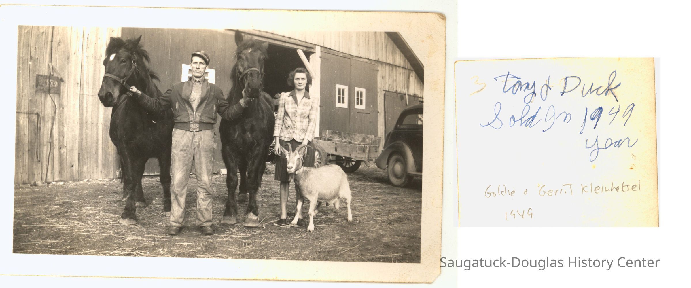 Notes: Notation on the back of photo; "Tony and Duck sold in 1949."