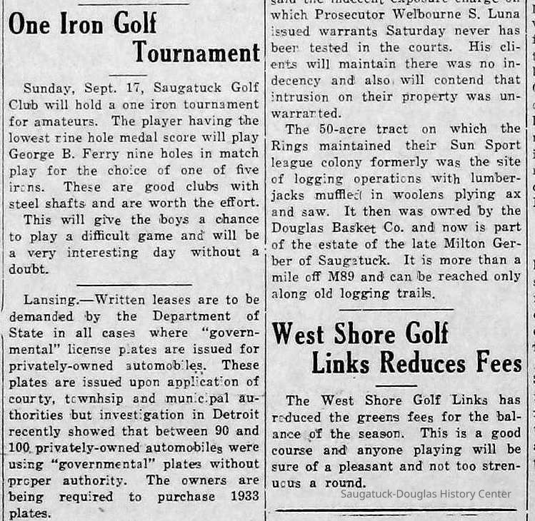 Shorewood/Hemlock Terrace, Clearbrook Golf Club/Hamilton Lake Club/Saugatuck Golf Club, West Shore Golf Course 1920-, West Shore Golf Links Club House/Kingsley homestead, Ferry, George Baker 1877-1960, Parrish, Charles W. (1877-1955), Zwemer, Joseph Benjamin 1879-1945, Wicks, Frank Herman 1883-1961, Flint, Frank W. 1882-1953, Fursman, Frederick Frary 1874-1943, Koning, James 1882-1946, Damoth, Dennis Elbridge 1888-1966, 340-360 Water/Dockside Marketplace/Boatyard Village/Hiestand's Edge Water Boat Livery/Heath Grist Mill, Murray, Wilbur H.