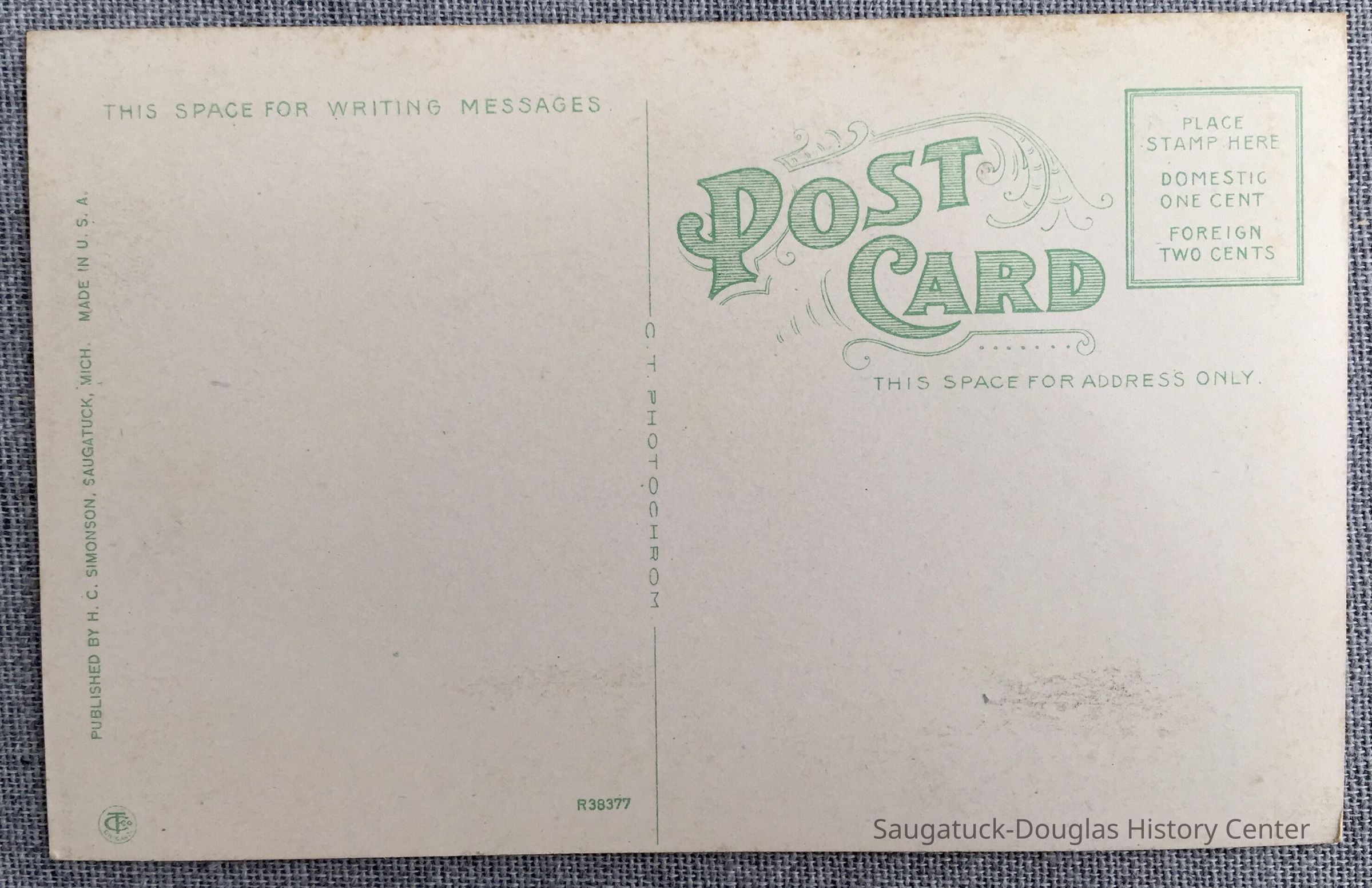 Unmailed, no writing. Color image on front and green-ink only on back. "Place stamp here" zone lists domestic postage as one cent. Image is printed, not a photo.Subject Place