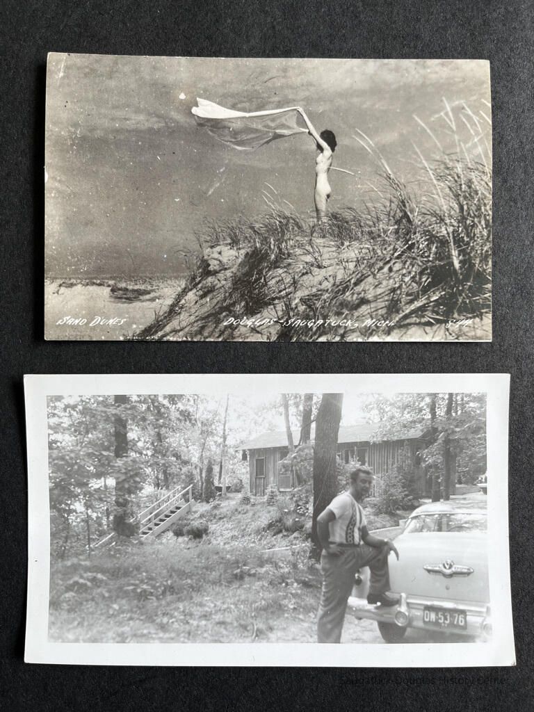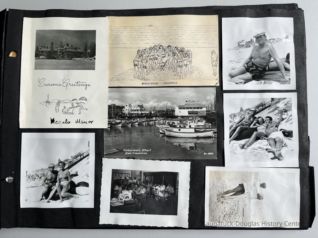 Mostly beach photos but also shots taken in Saugatuck, of a man in monk's robes, bird hunters, school pupils in hallways or lined up for class photos, postcards from Langres and Humes, France and San Francisco.Photograph Details