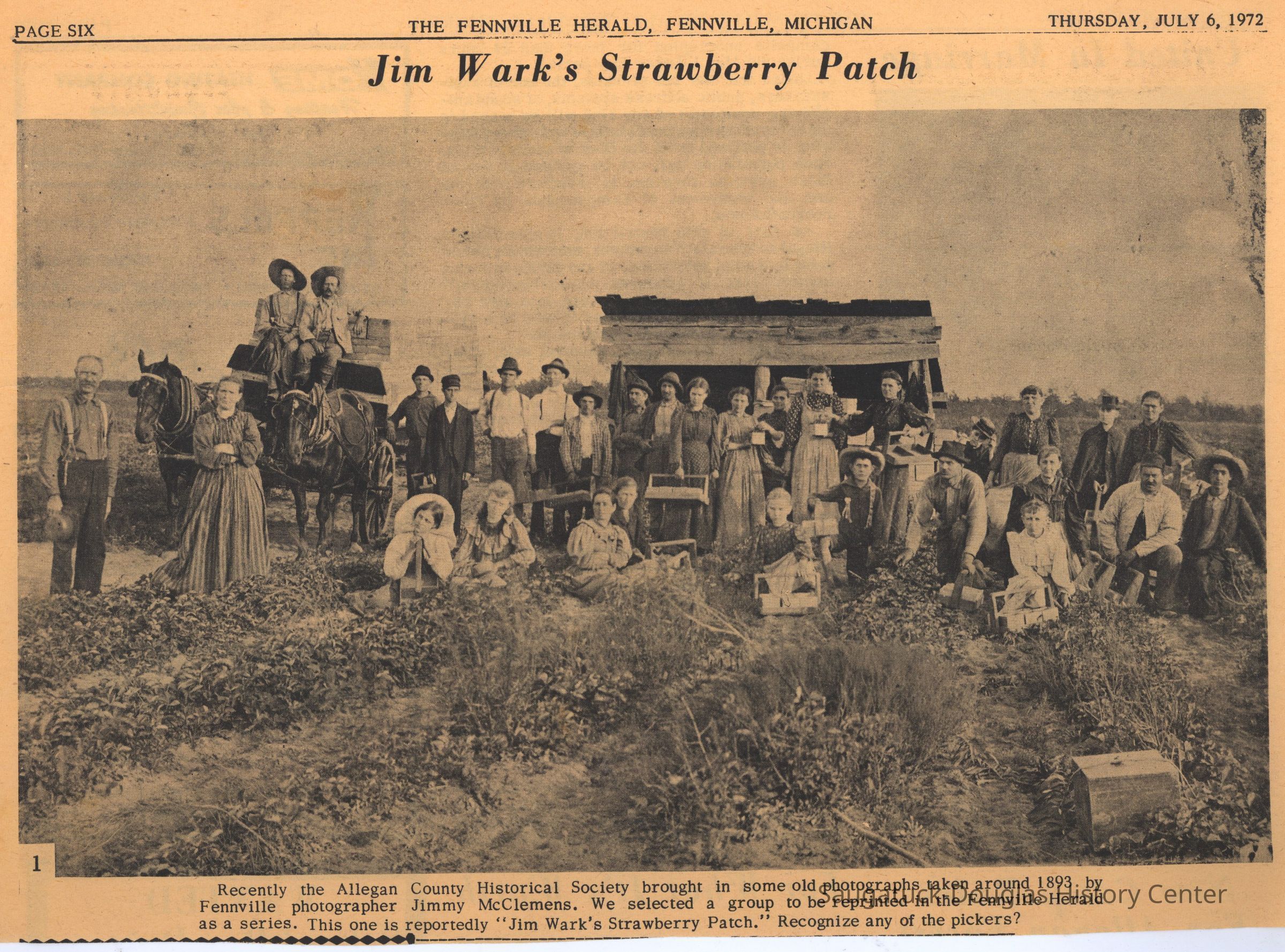 a. Scan of photo and caption from the July 6, 1972 Fennville Herald with the headline "Jim Wark's Strawberry Patch."