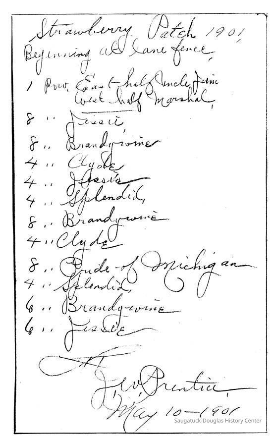 b. Scan of list of strawberries planted in 1901Collection