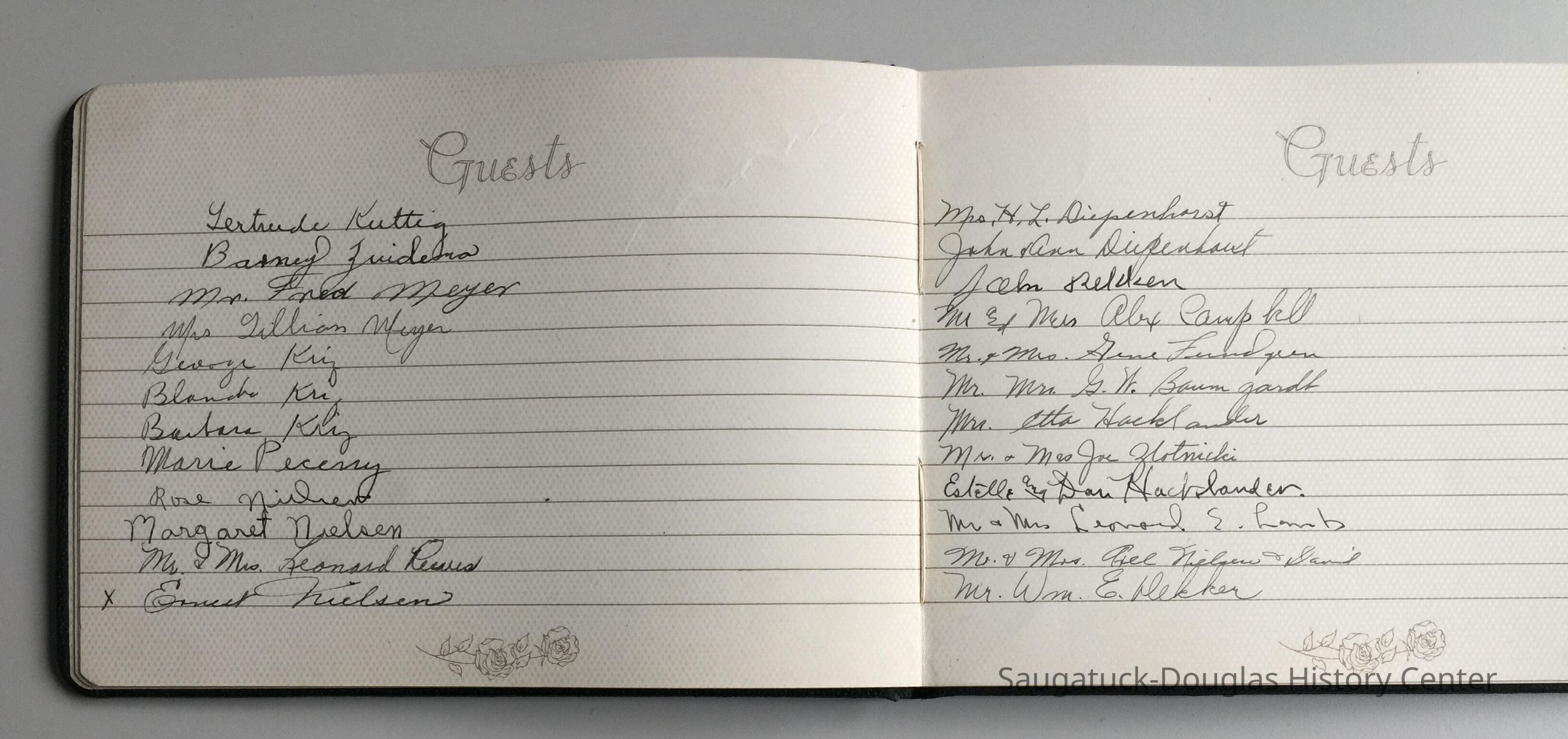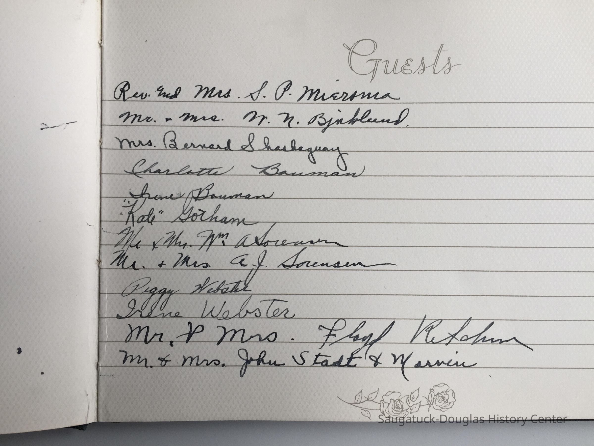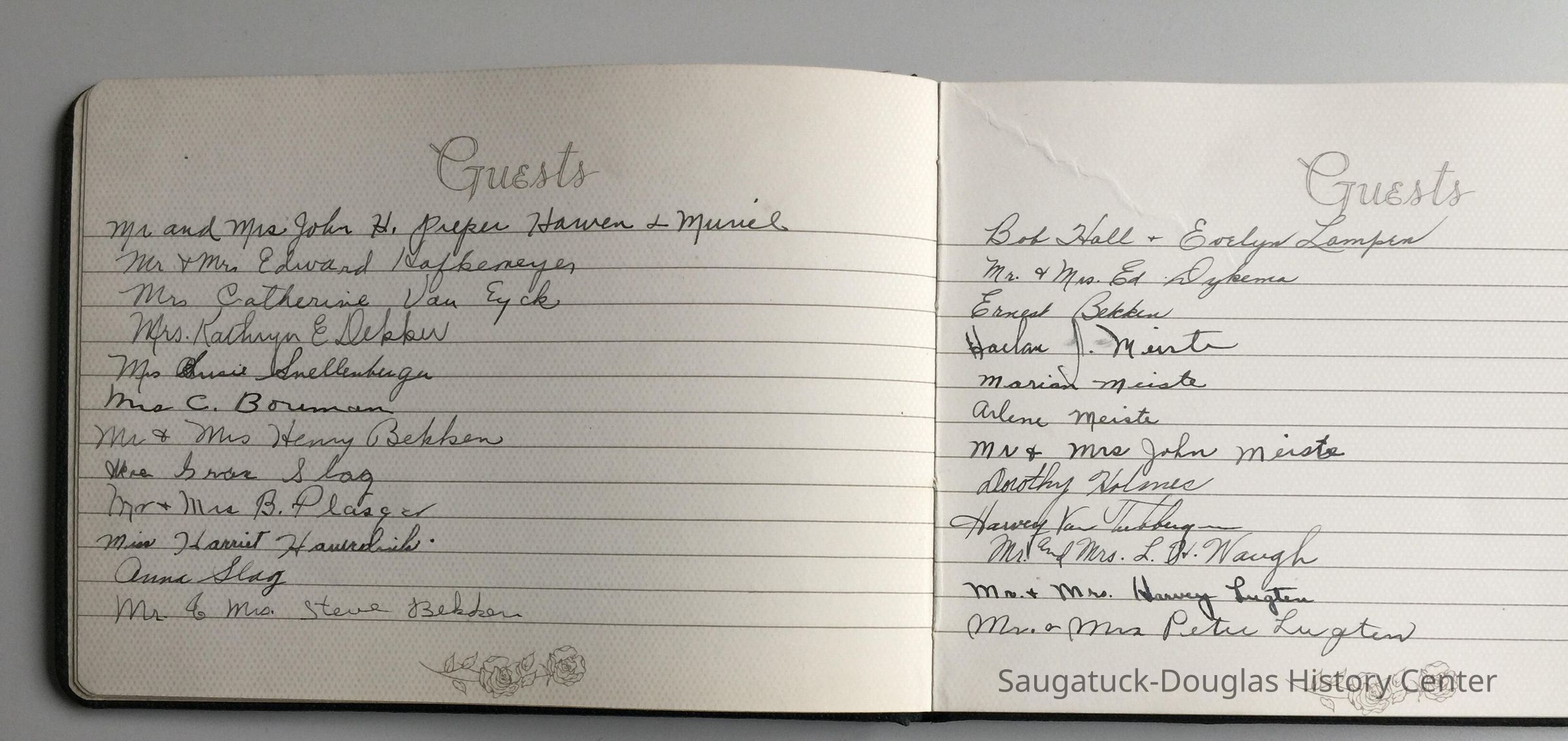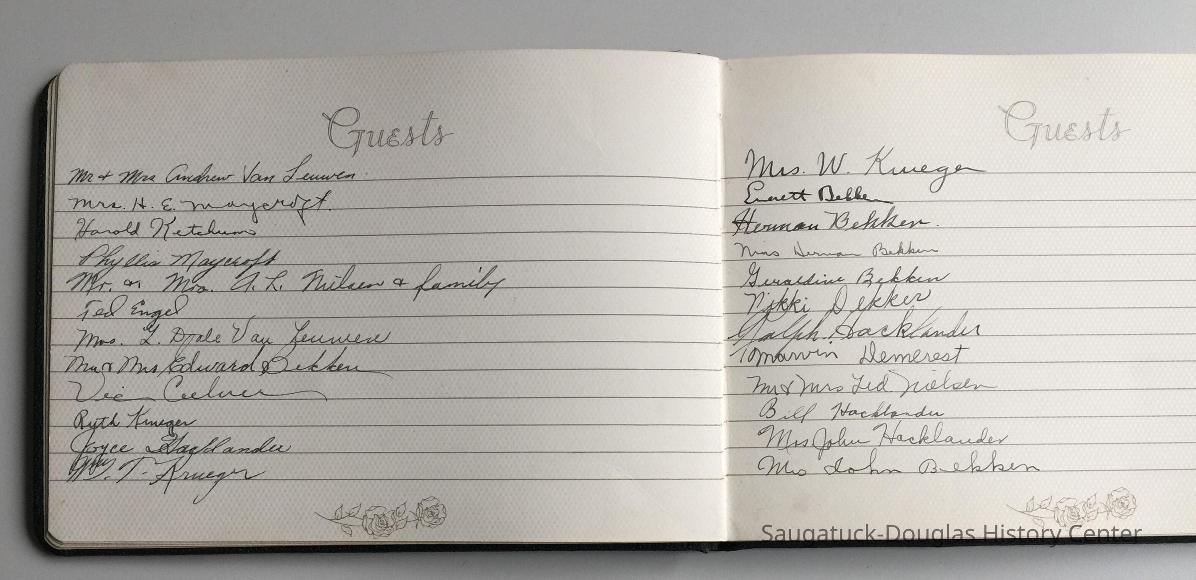 Guest book with eight pages of signatures from an unknown event but likely related to the Bekken family.