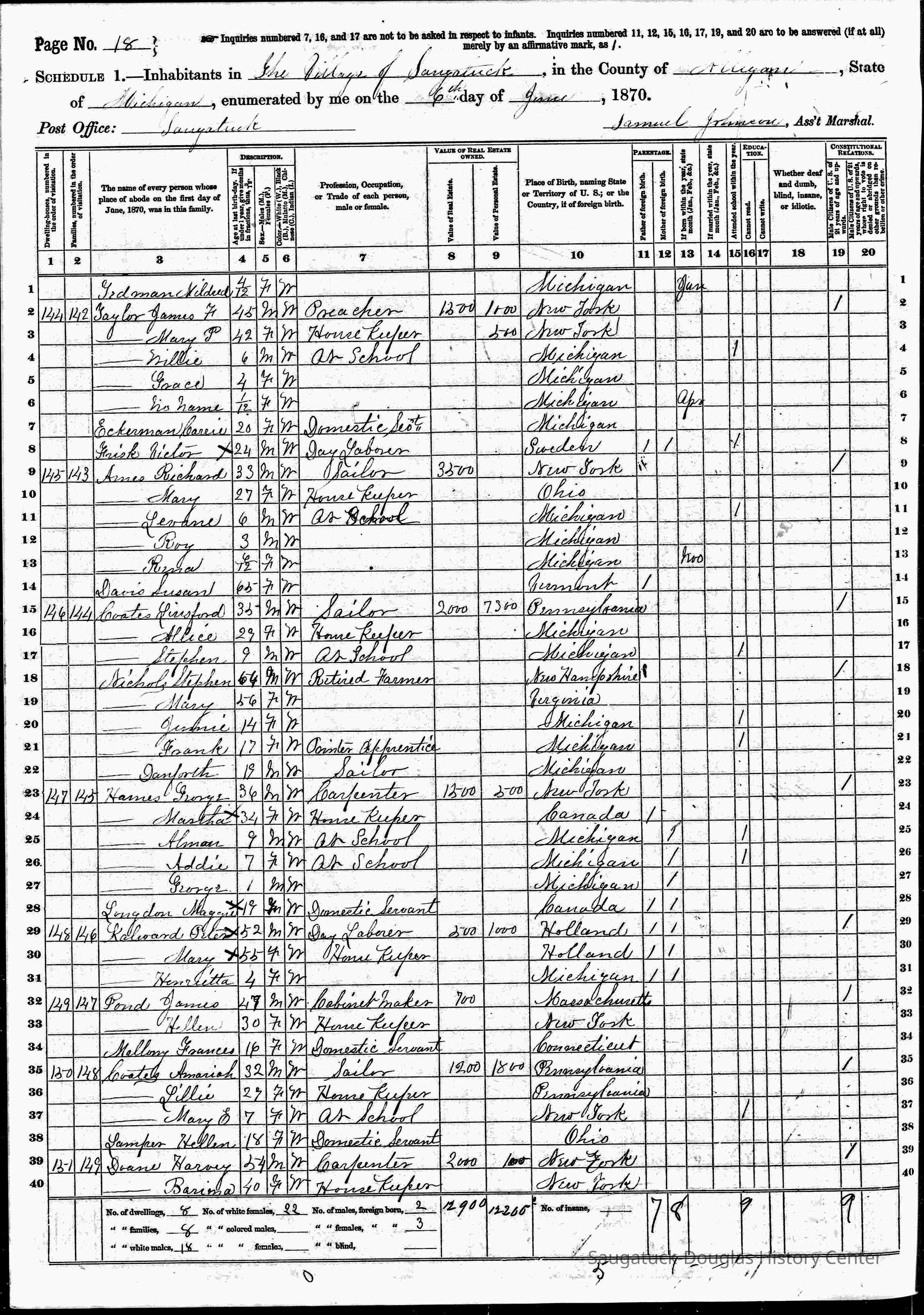 Dale, Mattie (Hames), 346 Griffith/Hames/Capt. Leland, Hames, Martha A. (Barnes) 1836-1925, Schnobel, Marie 1870-1930, Samuelson, Bessie 1868-1951, Hames, George N. 1869-1954, Hames, George W. 1834-1917, Houtkamp, Ada (Hames) c1877, Heath, May (Francis) 1873-1961, First Congregational Church Saugatuck, Mount Baldhead Steps/Stairs, Lone Pine Hill/Dune
