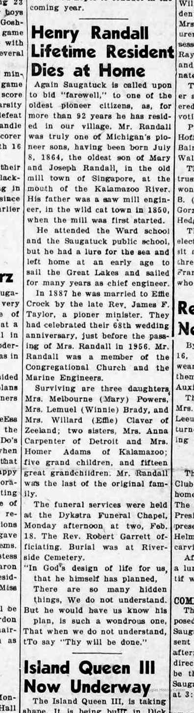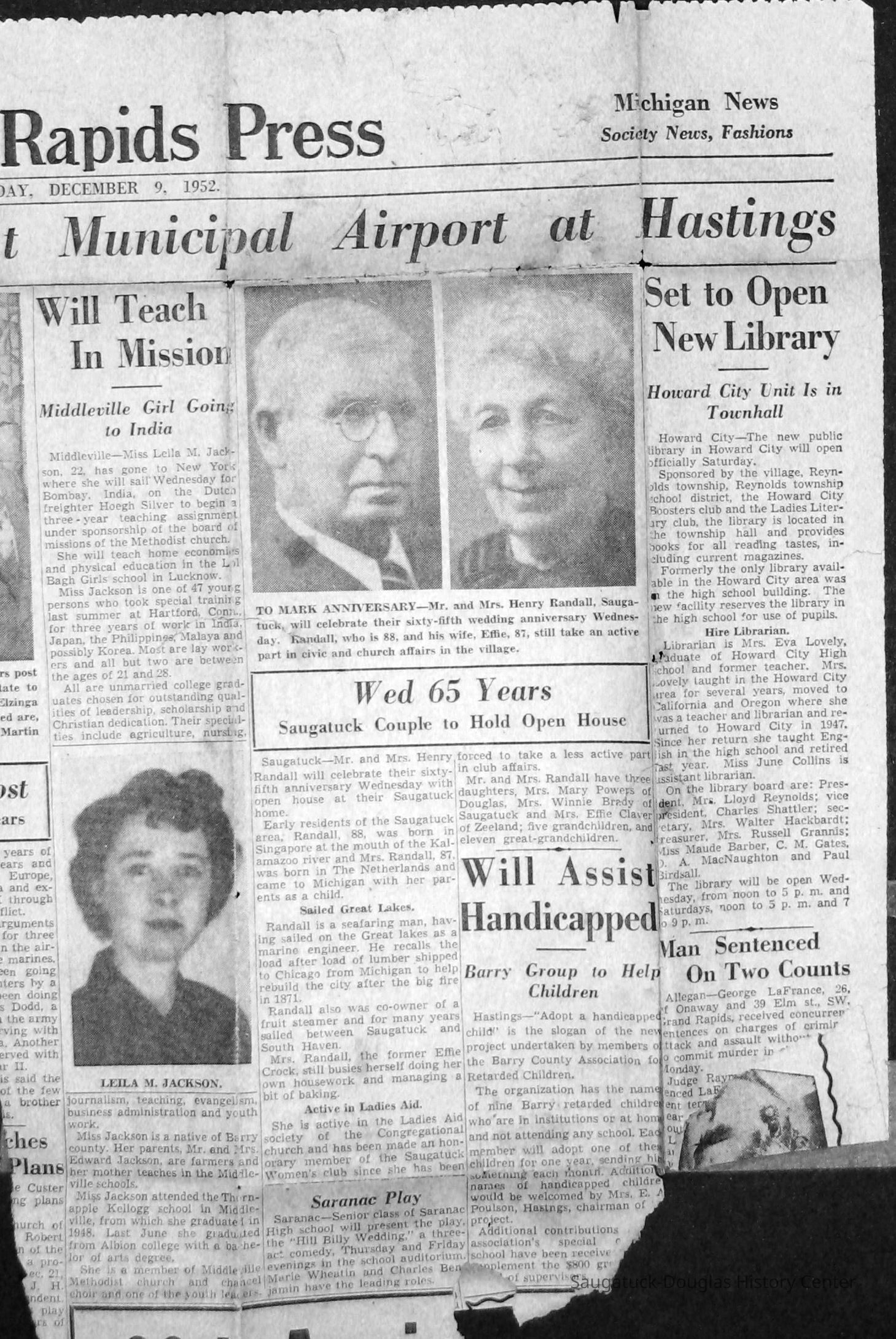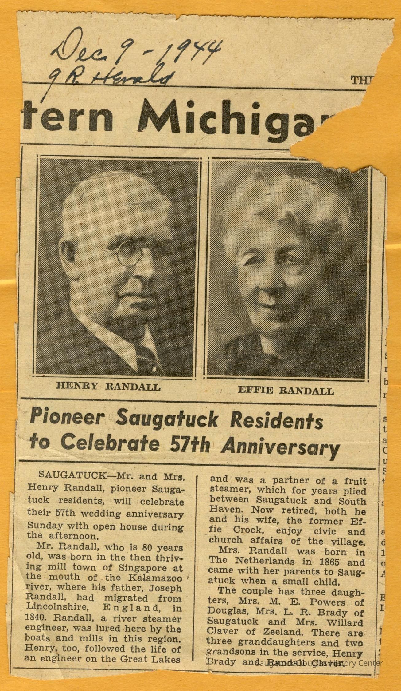 Newspaper clippings and photographs of Henry and Effie Randall and their three daughters Winnie (Winifred), Mary and Effie.Collection