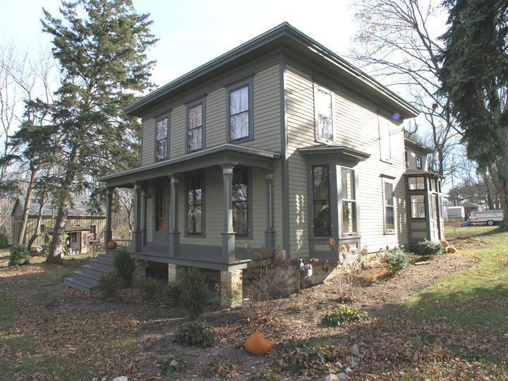 A good example of a one-story brick Italianate “cottage” and porch, recently restored —with a cleverly designed addition to the rear that allows the house to maintain its original integrity. Mr. Burns was a Saugatuck “Butler Street” grocer. Winner of a 2005 Saugatuck-Douglas Historical Society “Heritage Preservation Award”