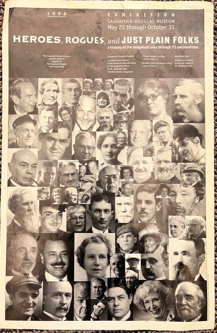 1998 Poster for the Museum exhibit titled, Heroes, Rogues and Just Plain Folks - a history of the saugatuck area through 72 personalitiesCollection