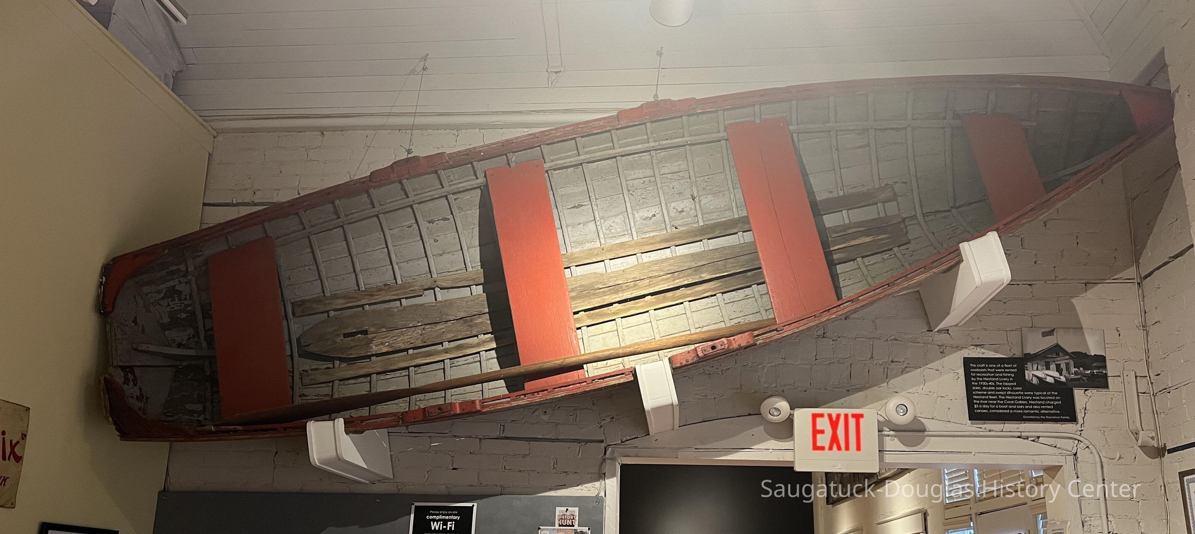 Don Webster who grew up in Saugatuck was recently asked to examine a large rowing boat that the society is considering refurbishing to serve as an outdoor exhibit. He was asked because he was an employee at the Hiestand boat livery in the middle 1940s. Webster said the boat that was given to the society was almost certainly a Hiestand boat.