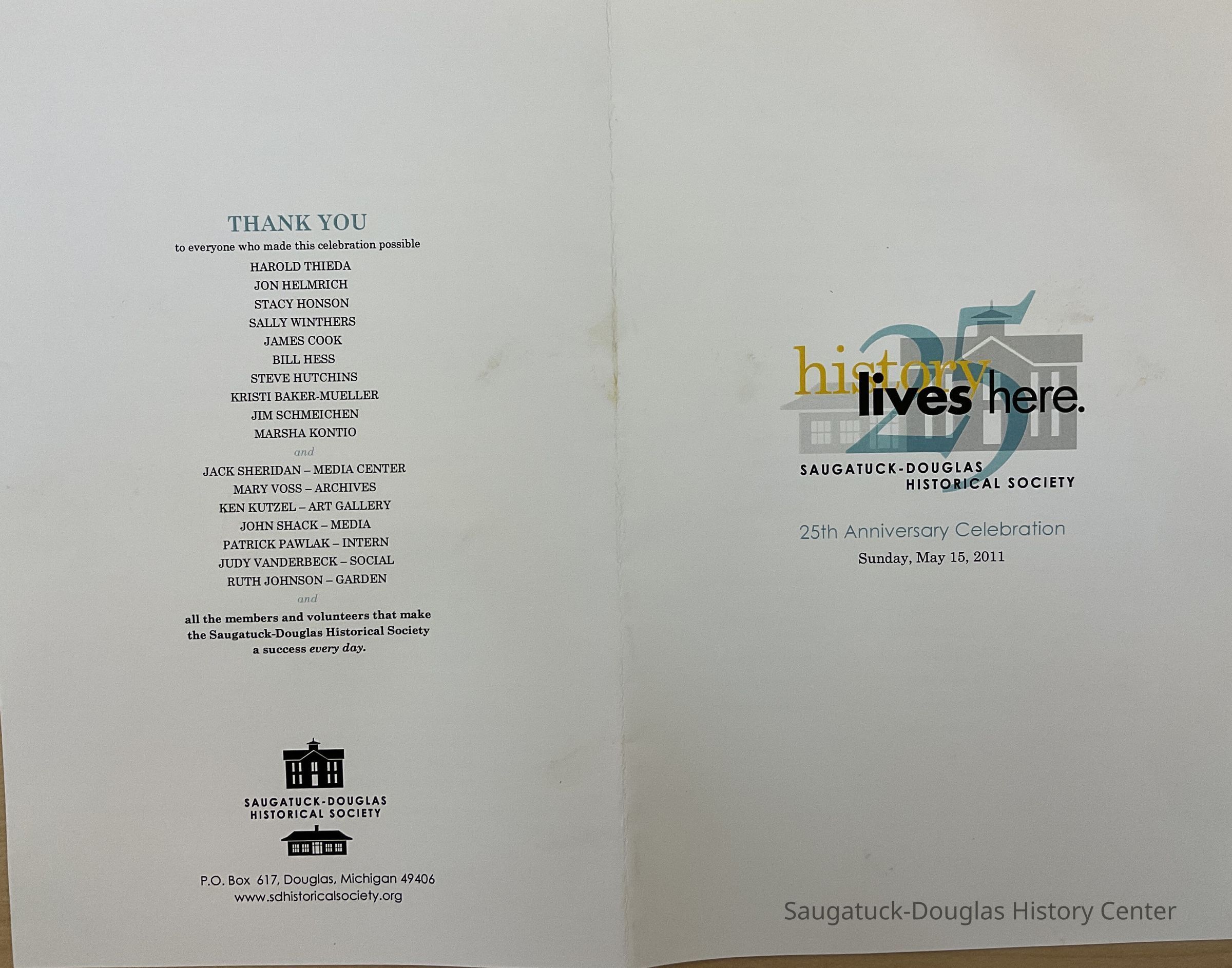 History Lives Here - SDHS 25th Anniversary CelebrationEntry/Object ID