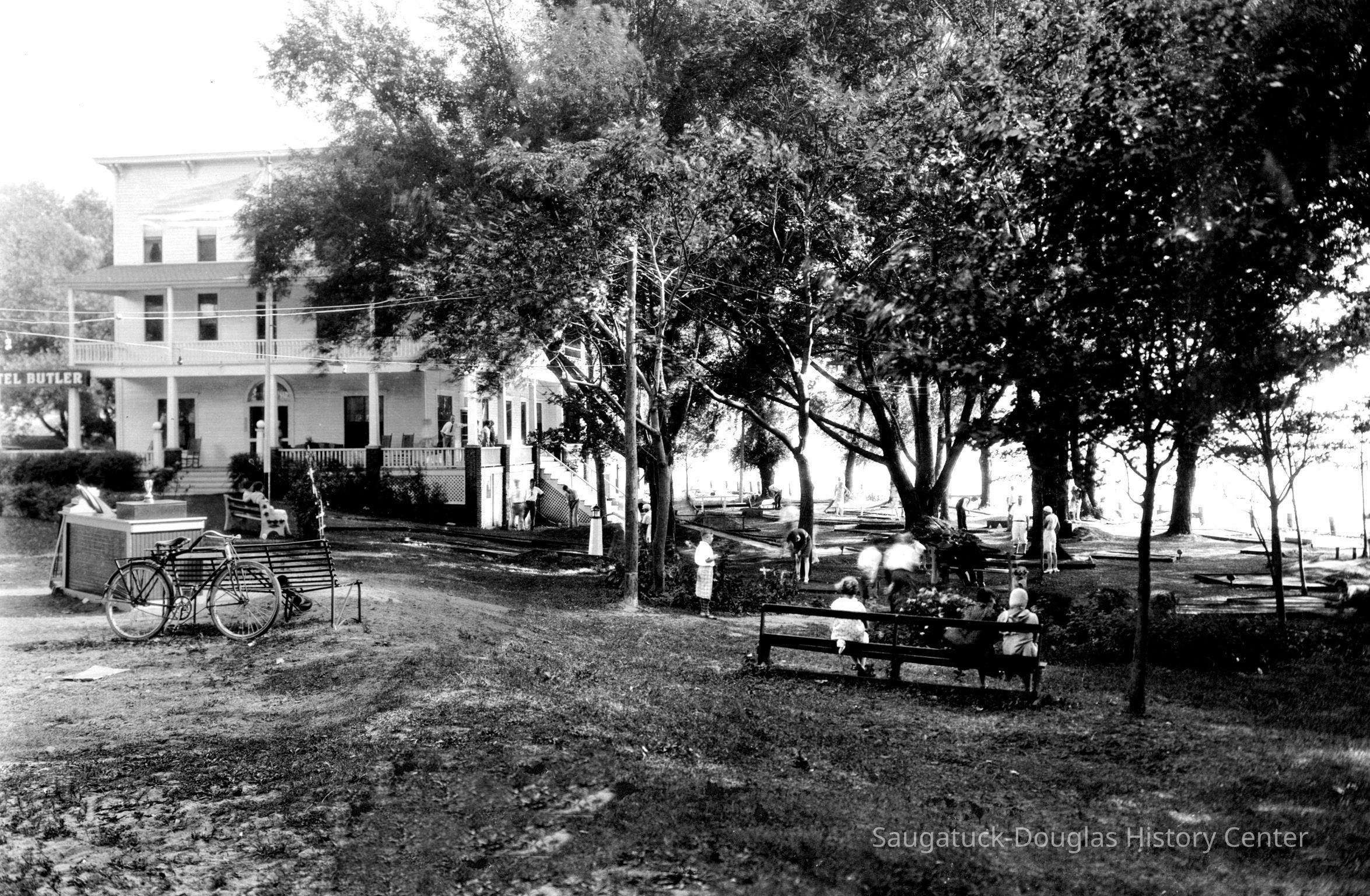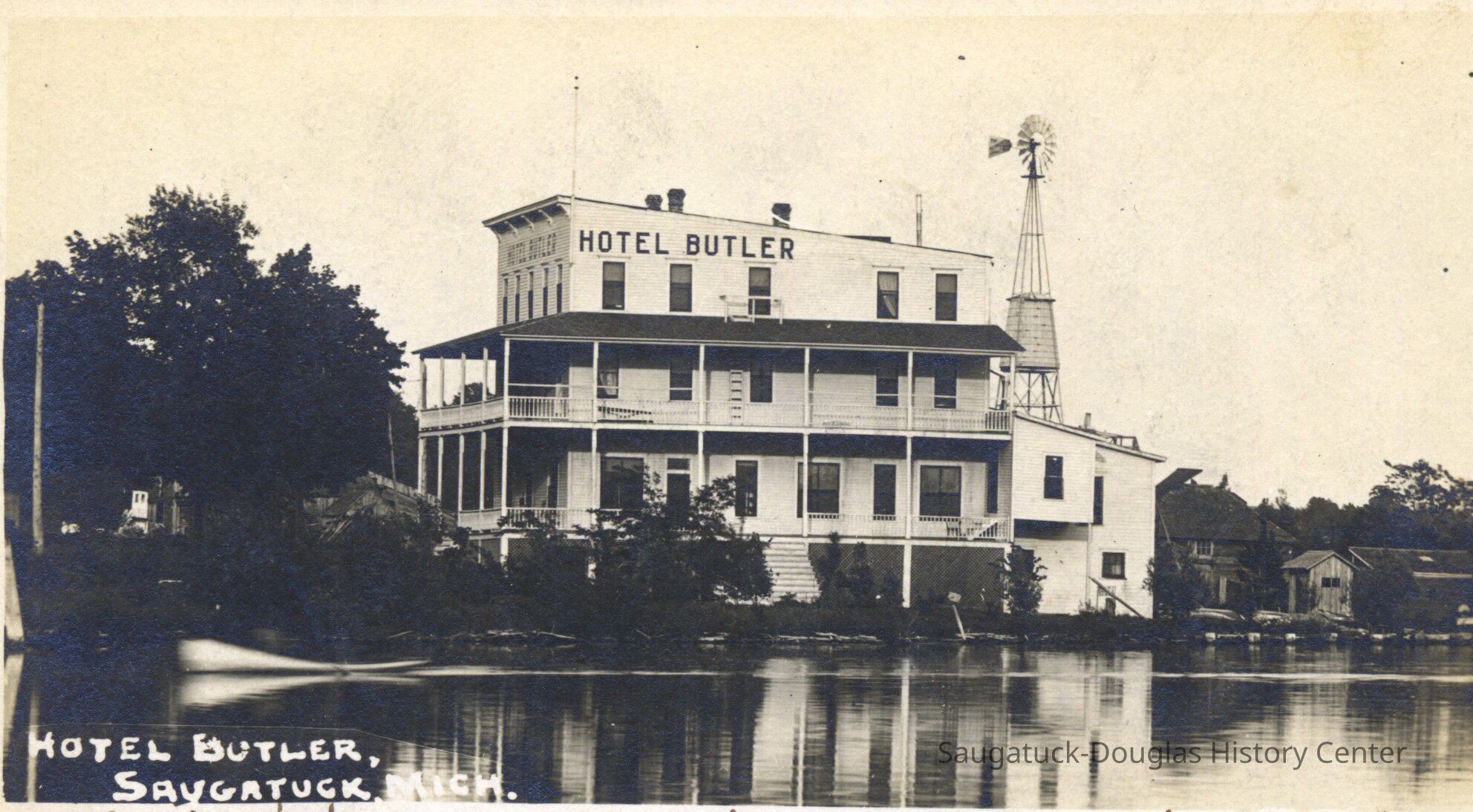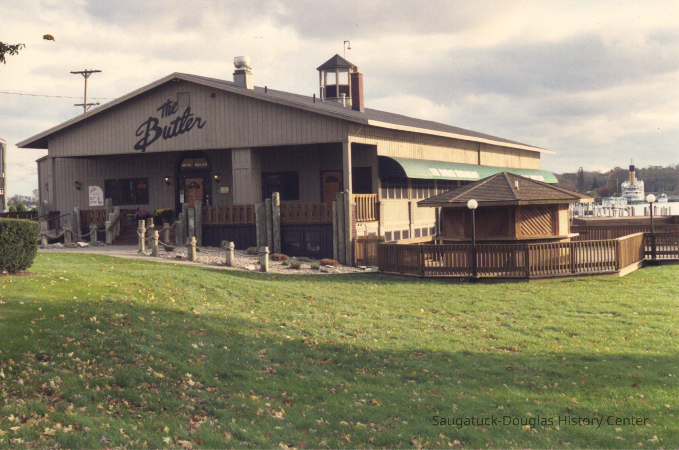 This image was featured as History Mystery #36 with the question "What is going on here?" and the answer "Built to meet the demand for a grist mill, converted to a three story hotel in 1900, the grand old structure was downsized - without missing a day open in the dining room - to save the delightful restaurant we have today ... The Butler."Photograph Details