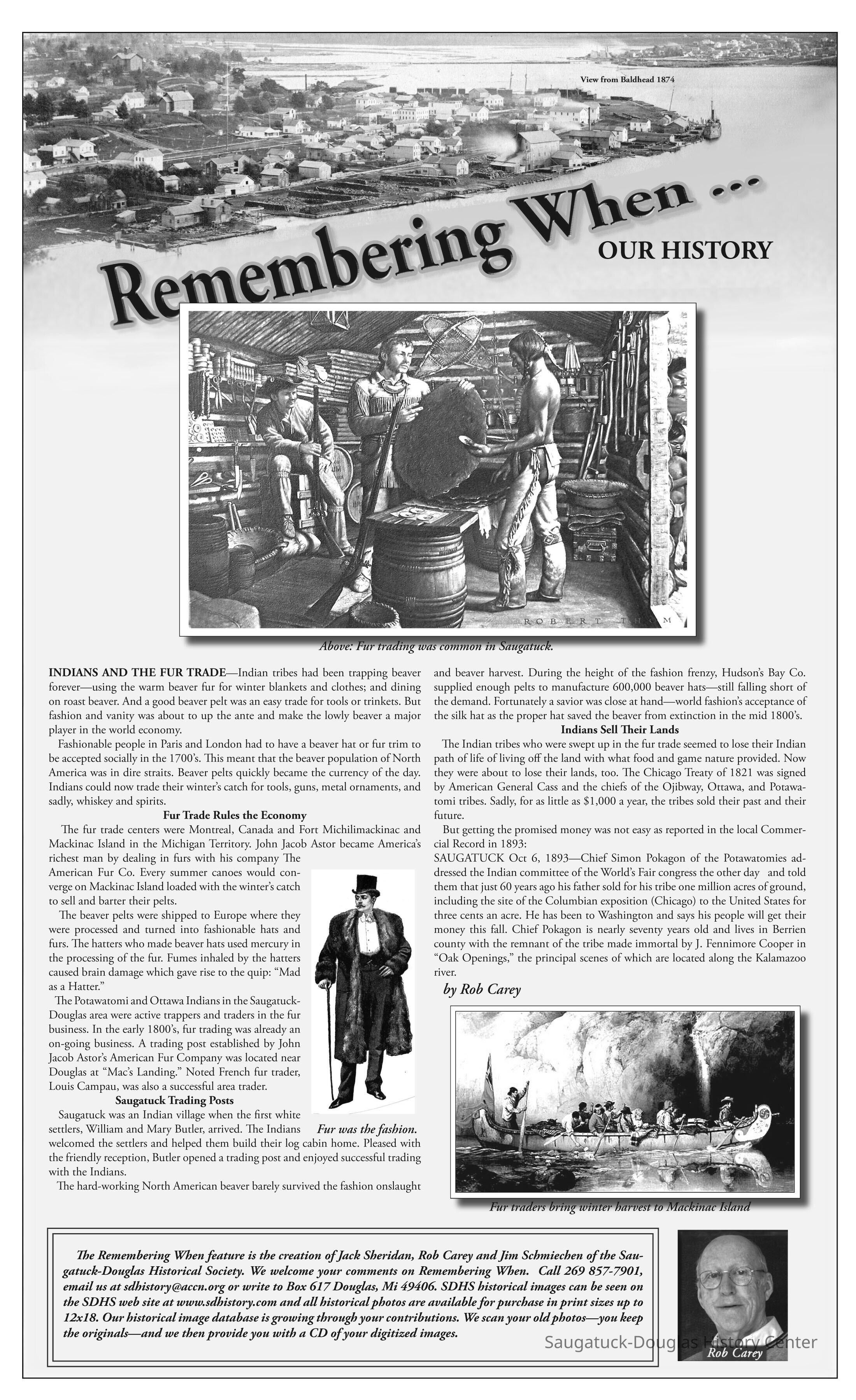 The Local Observer newspaper Remembering When - Our History article titled "Indians and the Fur Trade"