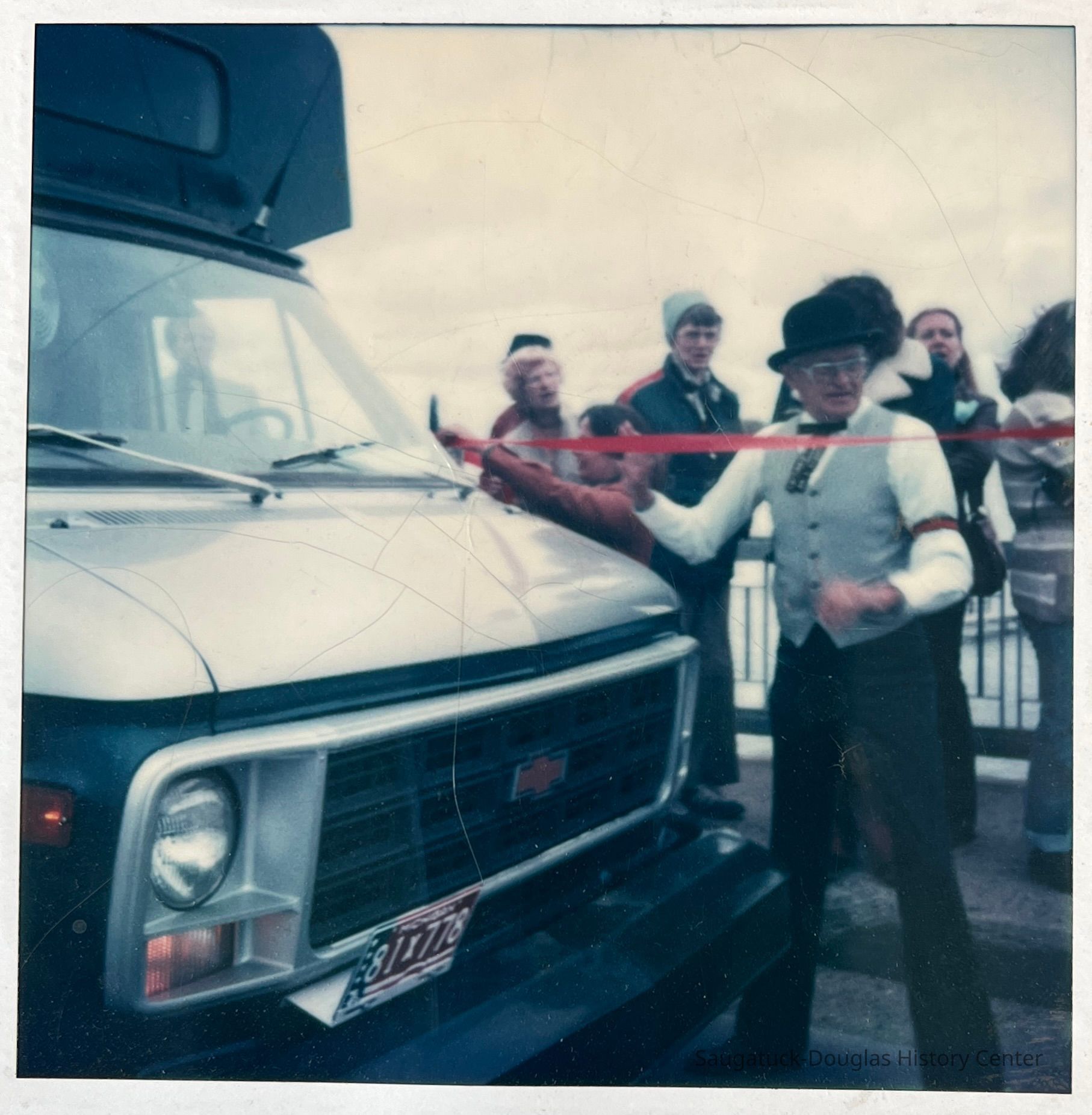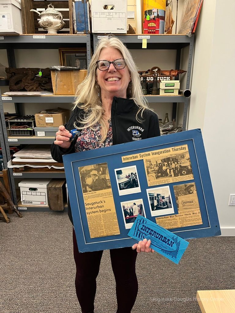 Commercial Record newspaper clipping includes photos of Cora Bliss Taylor, Interurban dispatcher Art Colby, driver Gordon Durham, driver Mala Boyce, coordinator Cherie Giller, dispatcher Bobbi McCray, driver Hilton Brown and driver Linda Sobol (not shown drivers Don Davis and Odessa Hurd) and Rob Krause with his winning logo design. The first dispatch office was in the Saugatuck Village Hall.Cataloged By