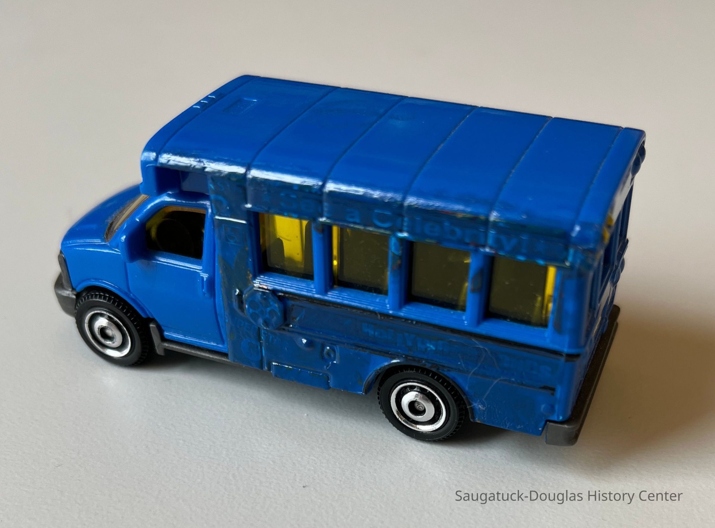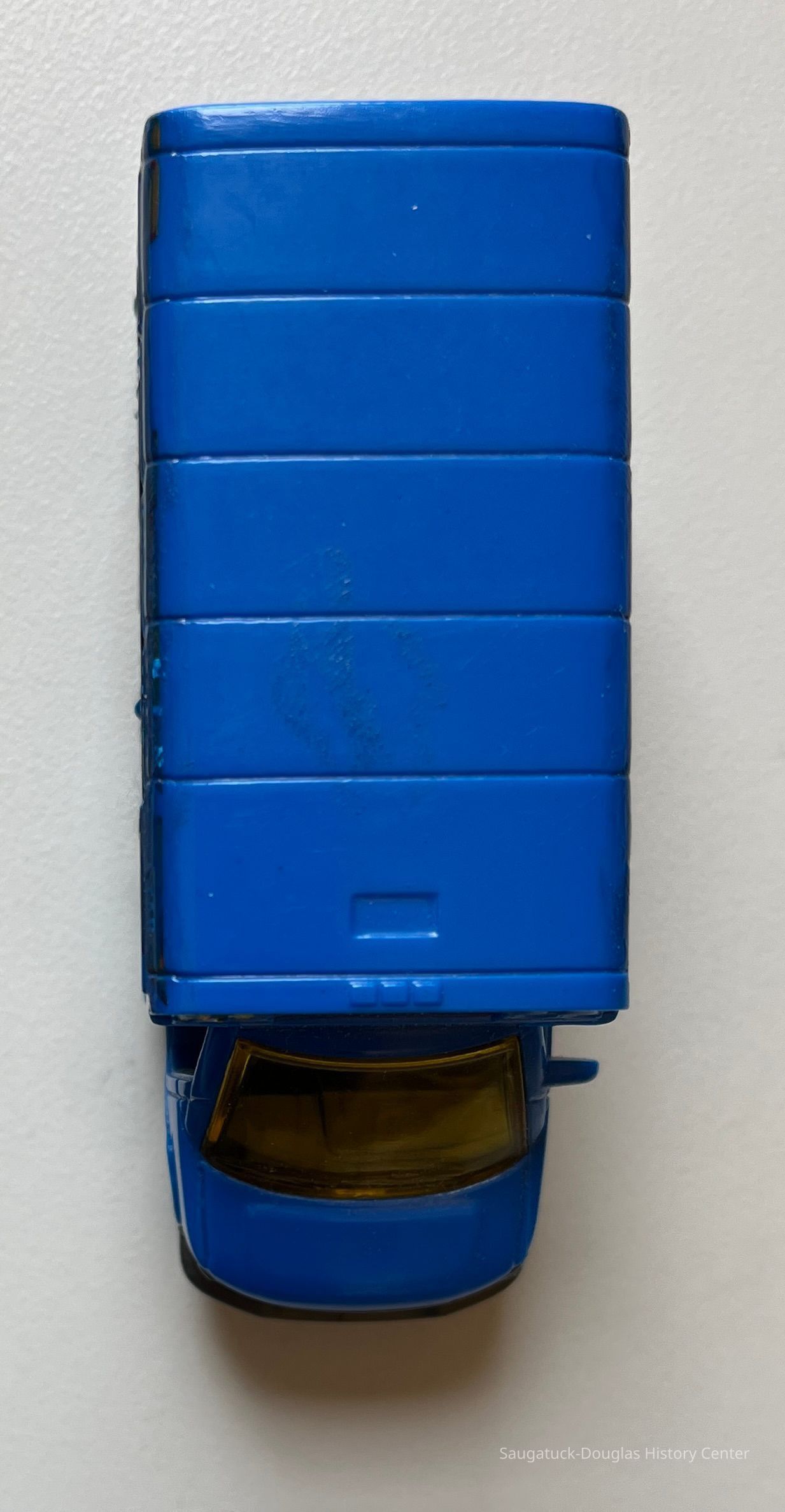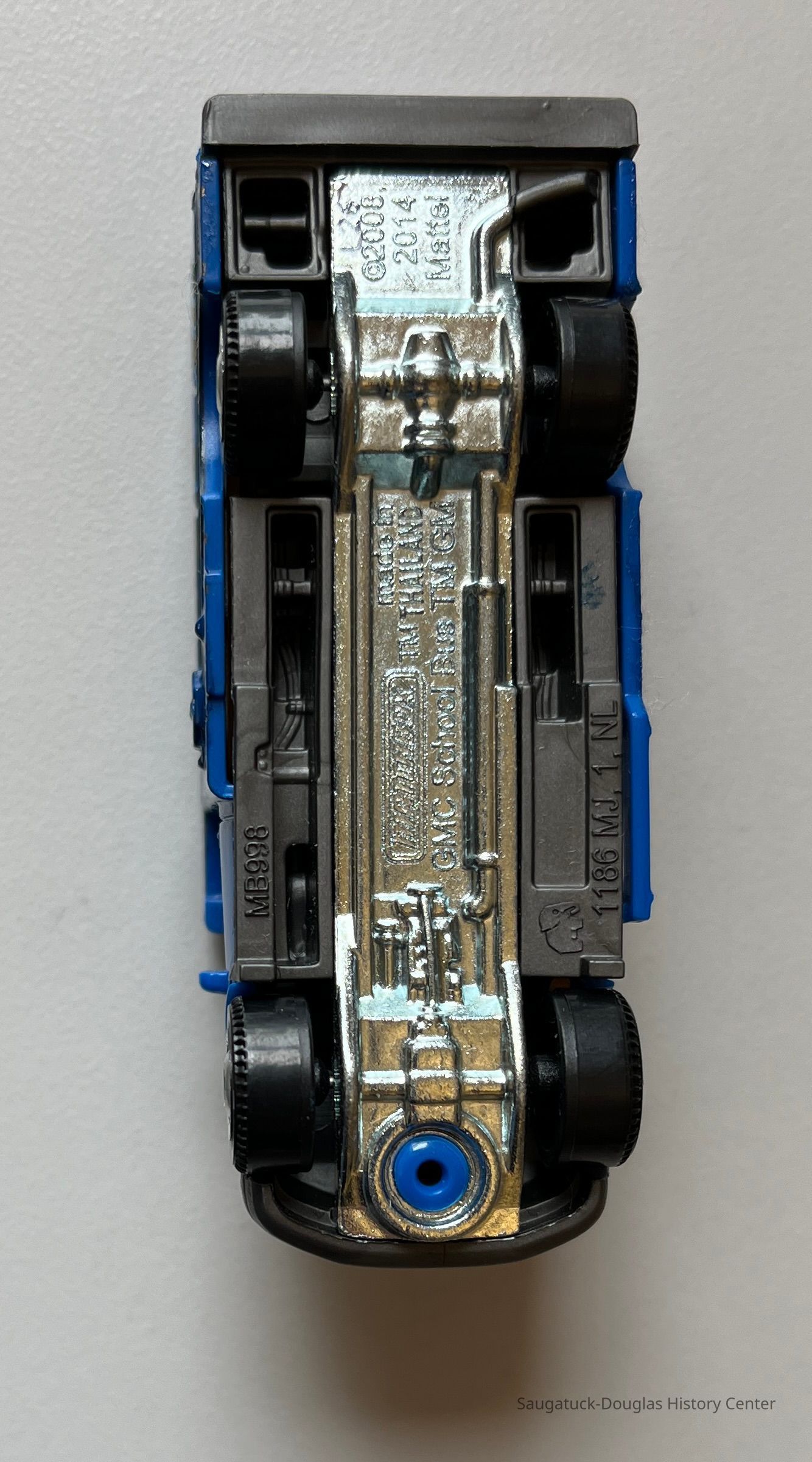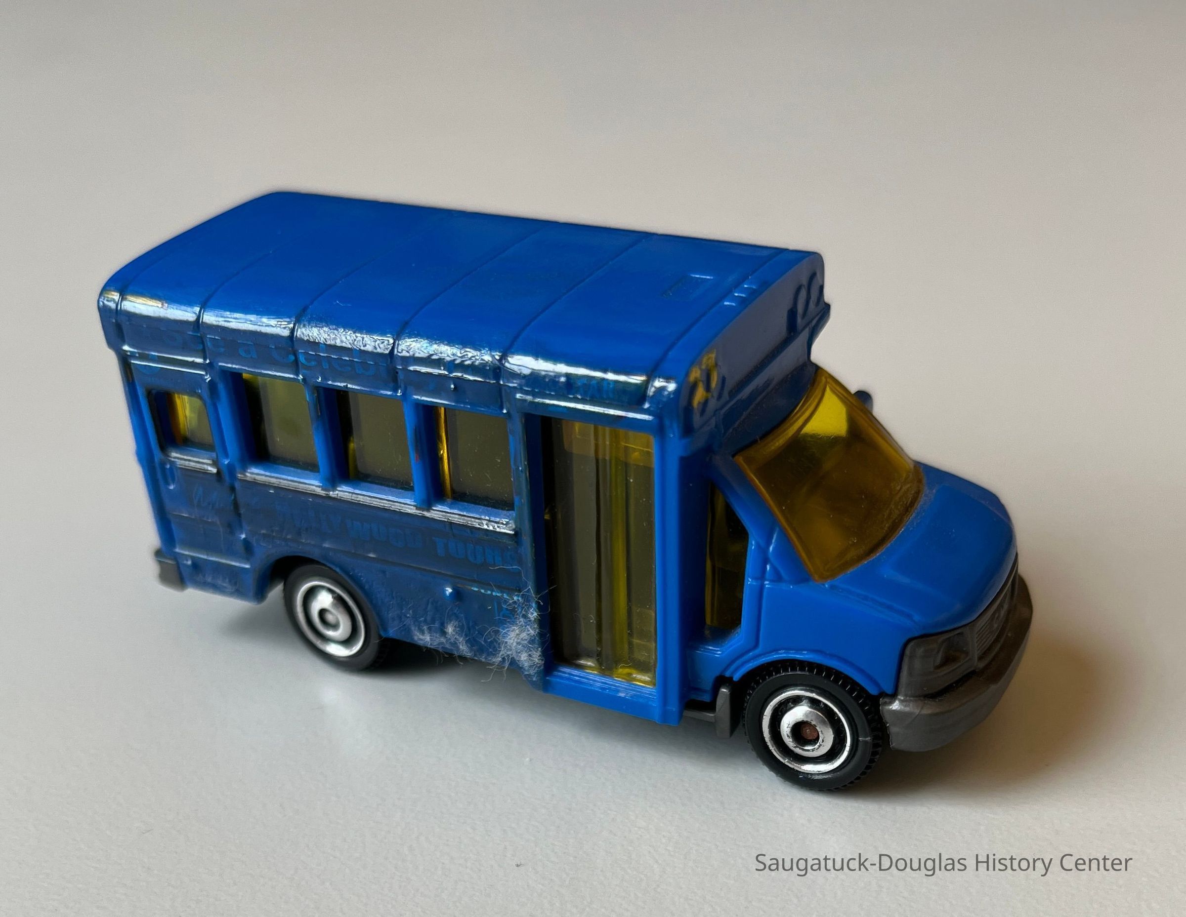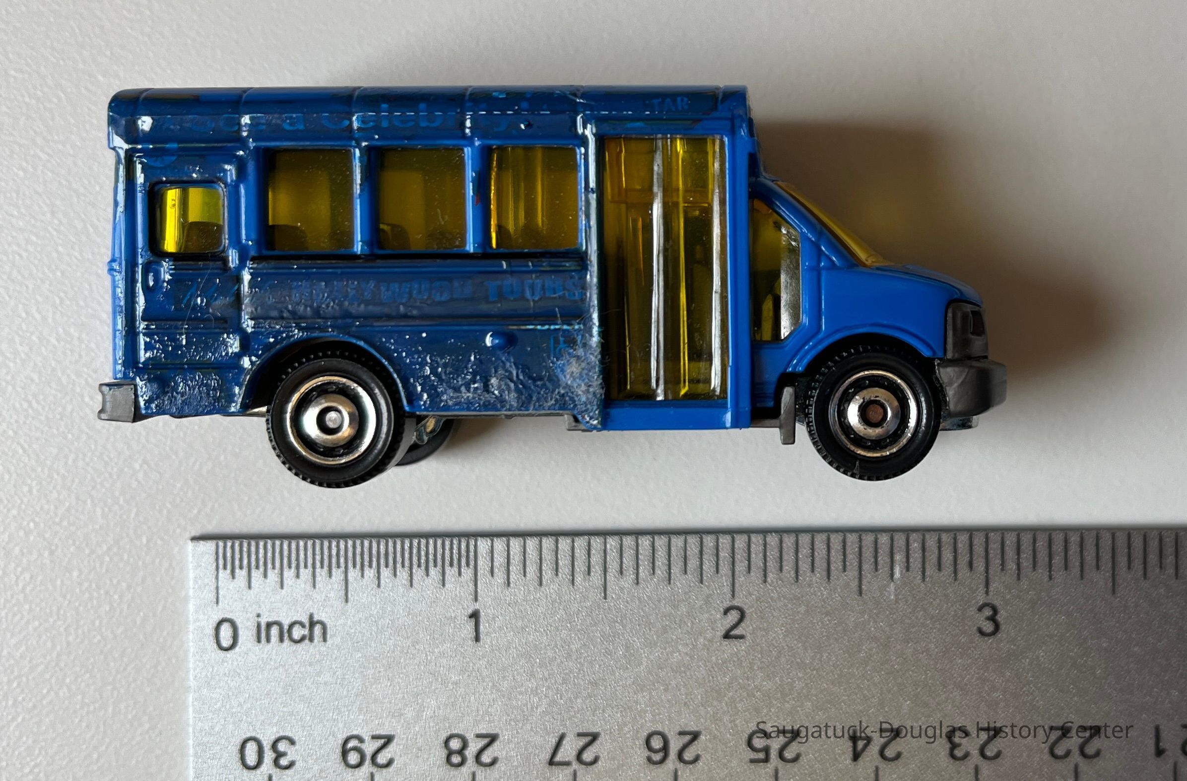 1. matchbox-style blue bus toy