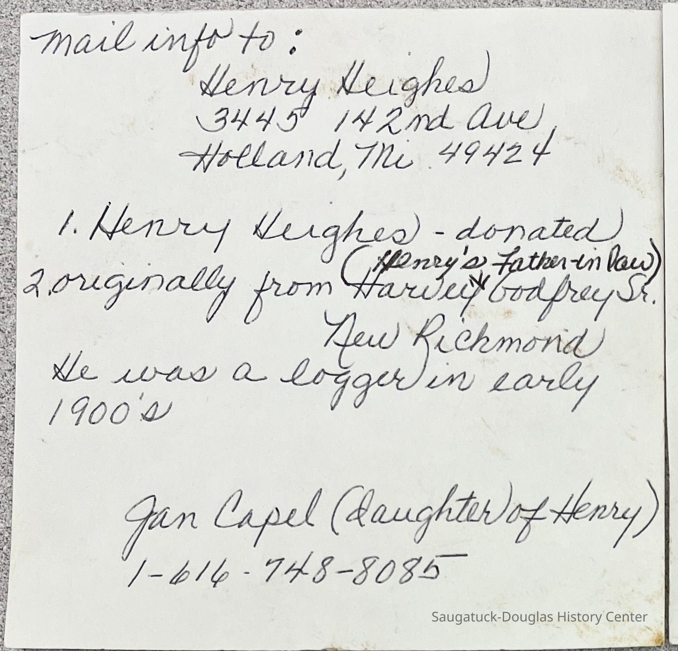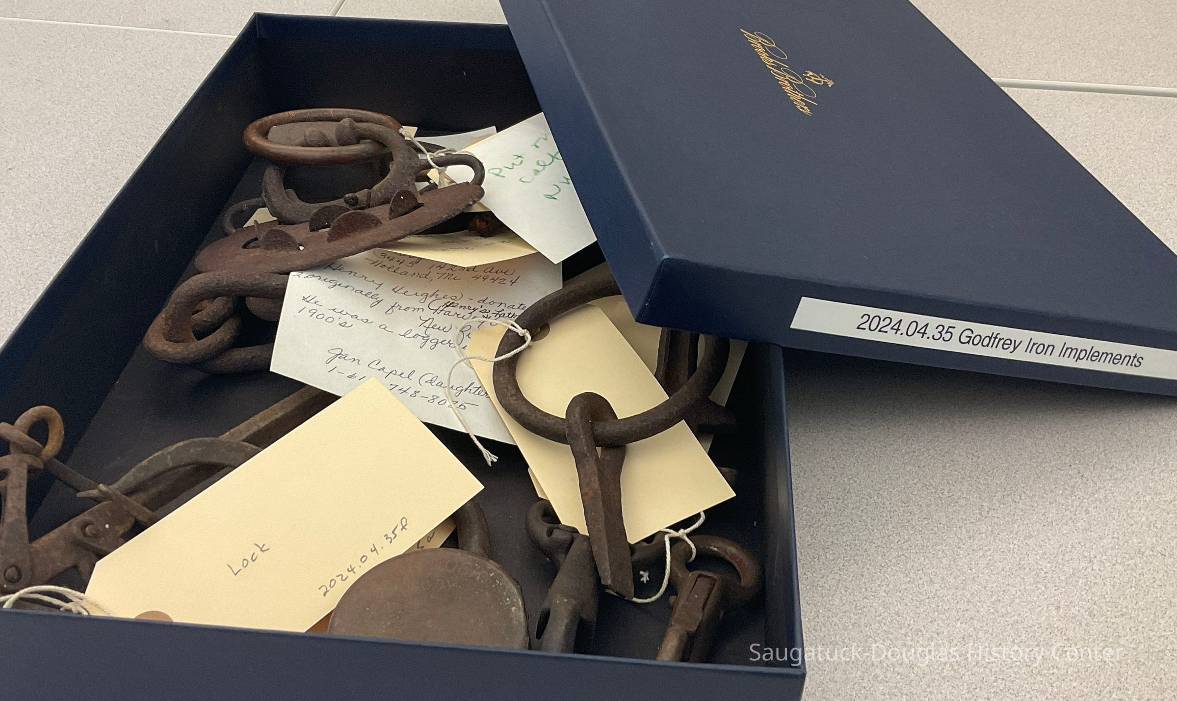 A note included with donation states the items were originally from Harvey Godfrey Sr., of New Richmond and that he was a logger in early 1900s.Collection
