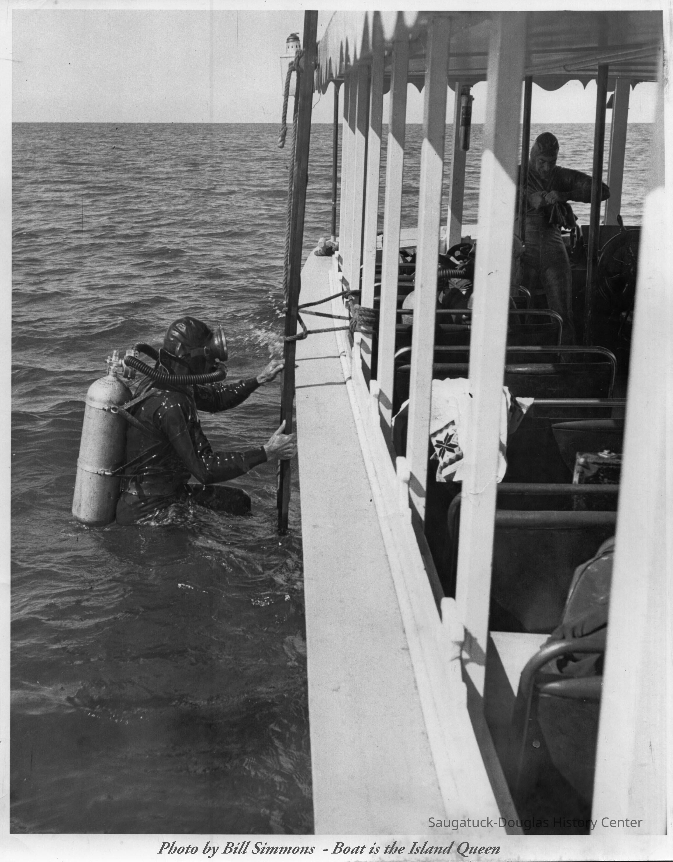106 0/7 Lake Michigan, Boats 9/1957 Divers on Island Queen