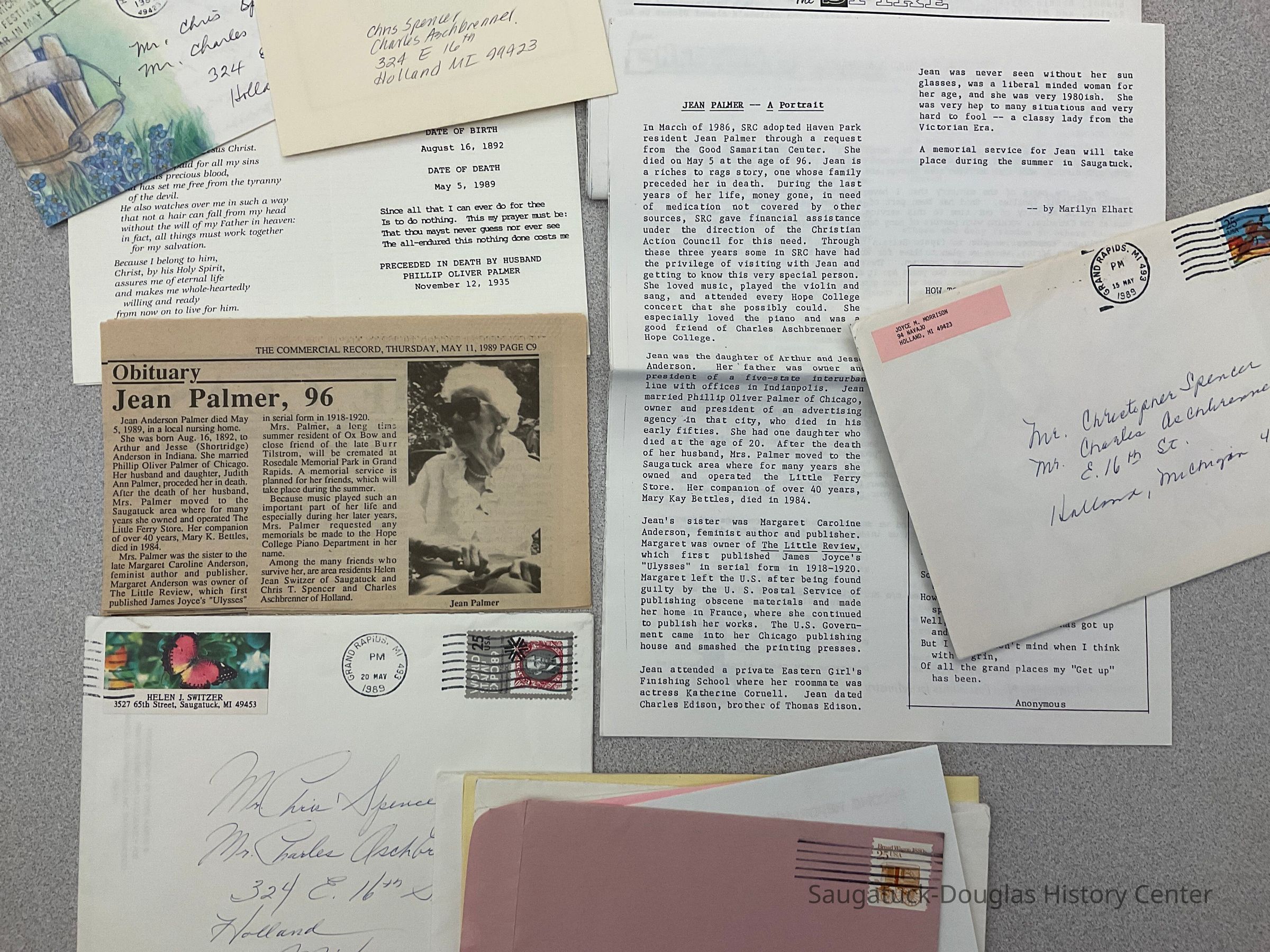 Newsletter published by Second Reformed Church with an article about the life of Jean Palmer June 1989. The church "adopted" her when she was in Haven Park nursing home.