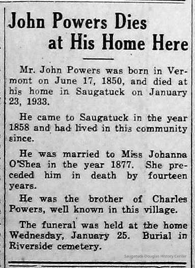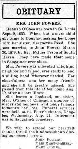 Powers, John 1850-1933, Powers, Johanna "Hannah" (O'Shea) 1855-1918Collection