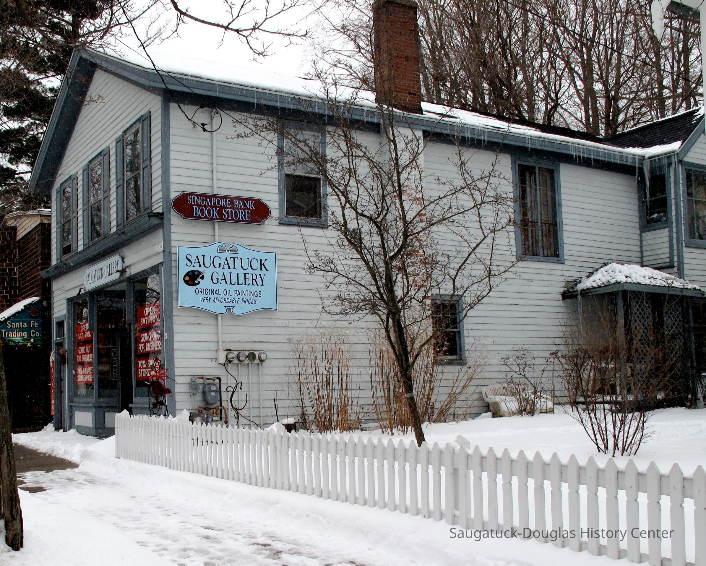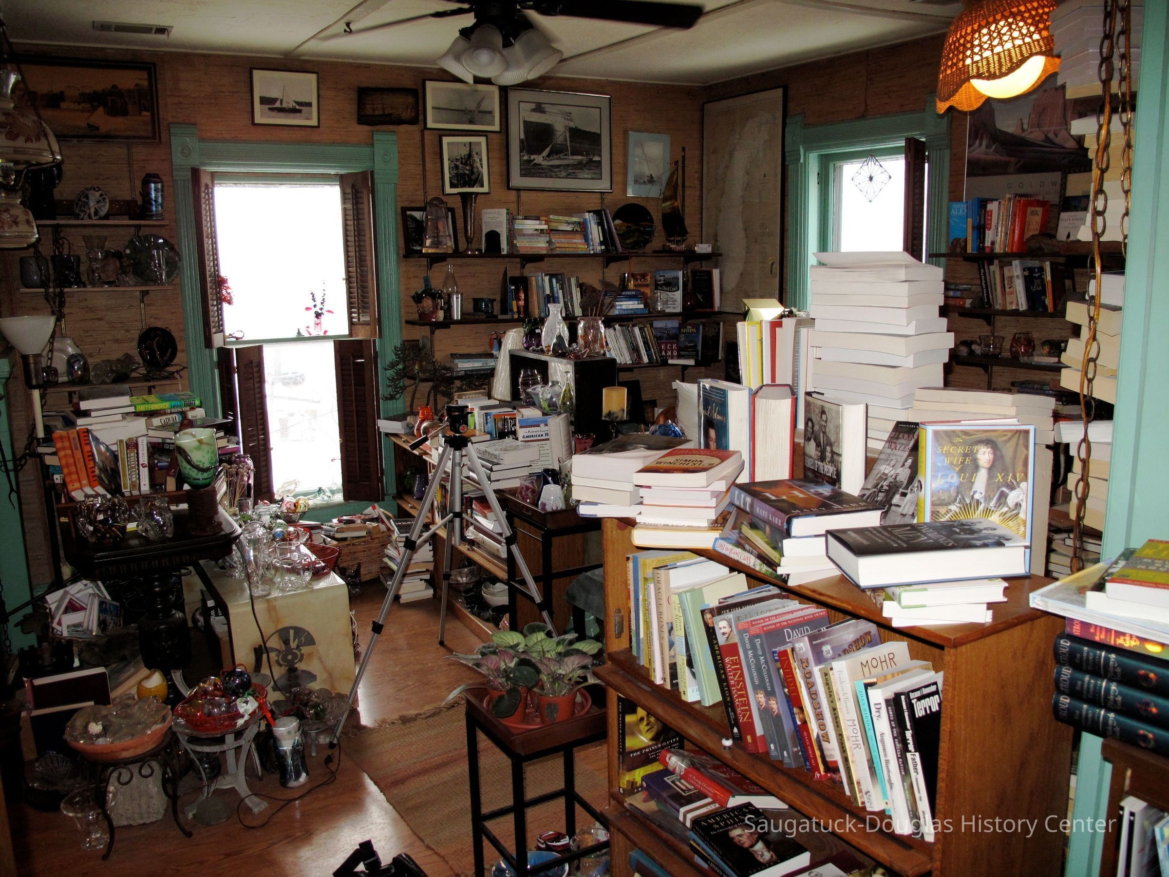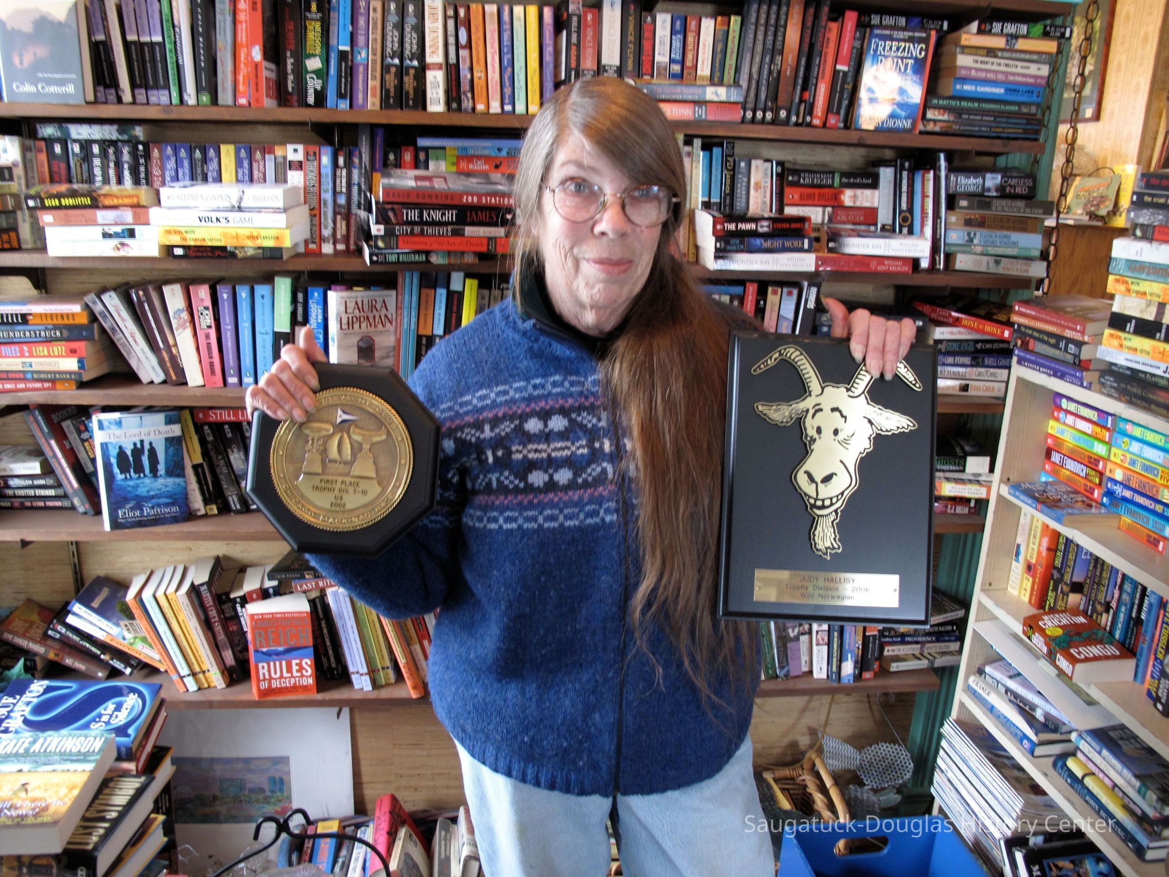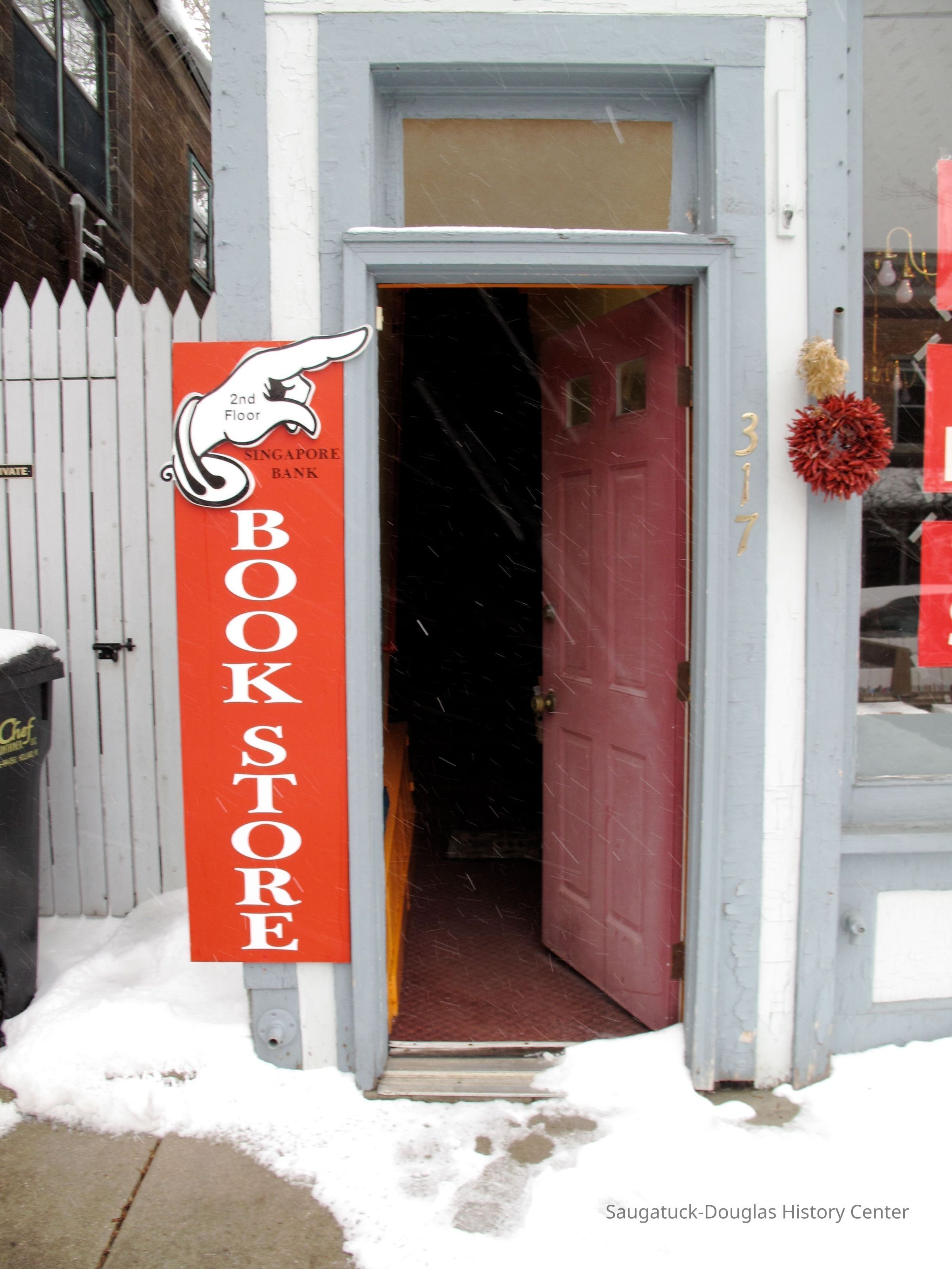 In 1987 Judy and Phil Hallisy were both working for Crowleys Boat Yard on Chicago's south side where Phil was the yard boss and Judy the office manager. After a conflict with management, they decided on a life direction change. With boxes of previously read books they struck out for the Michigan southwest coast in search of a suitable place to plant a bookstore. After first exploring South Haven they discovered that the old Singapore Bank building on Butler Street was on the market and recently reduced in price. With a the first floor comfortably producing rental income, the Hallisy's could afford to move upstairs and open their bookstore in what had been the front apartment, while living in the rear apartment. The arrangement has a distinctly old world feel with every nook and cranny of the bookstore displaying Judy's persona.