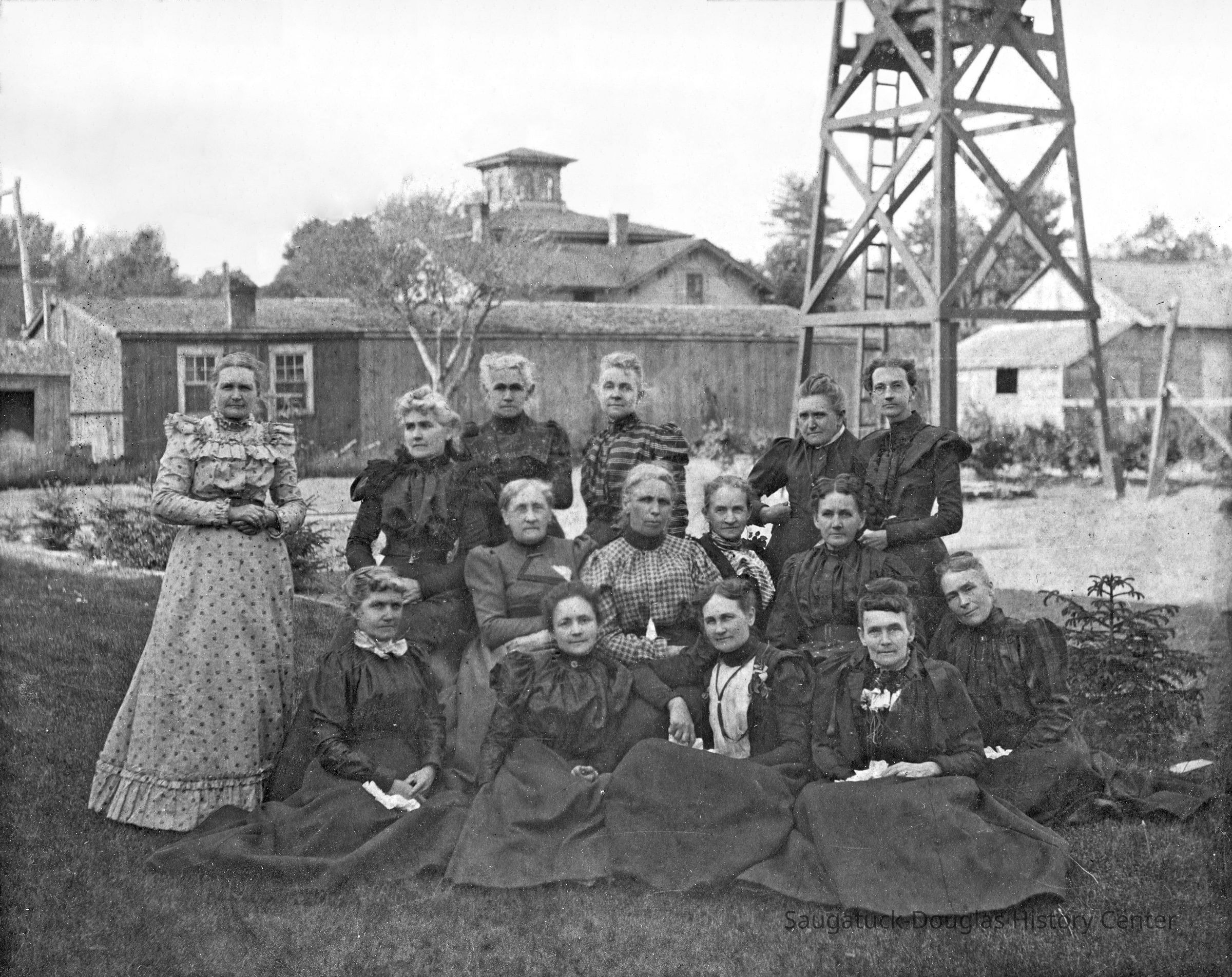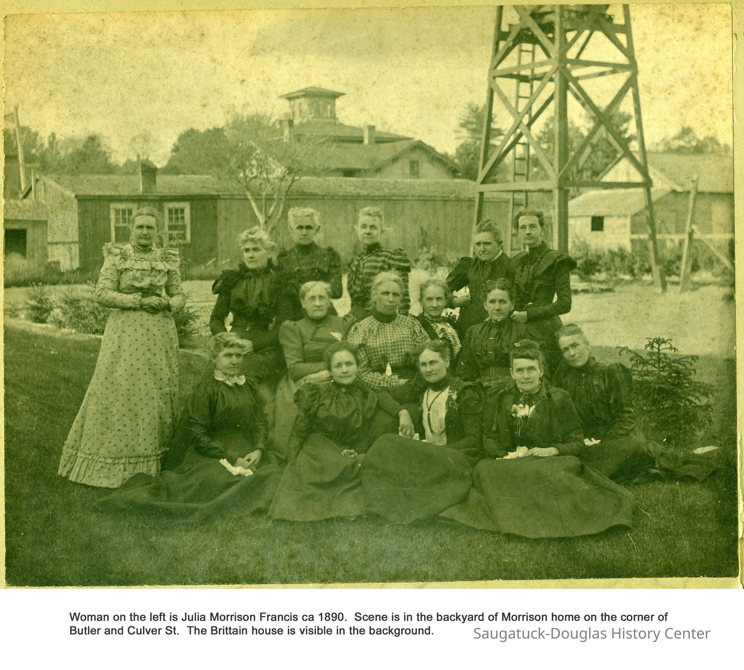 Woman on the left is Julia Morrison Francis circa 1890. Scene is the backyard of Morrison home on the corner of Butler and Culver St. The Braittain hosue is visible in the background.Photograph Details
