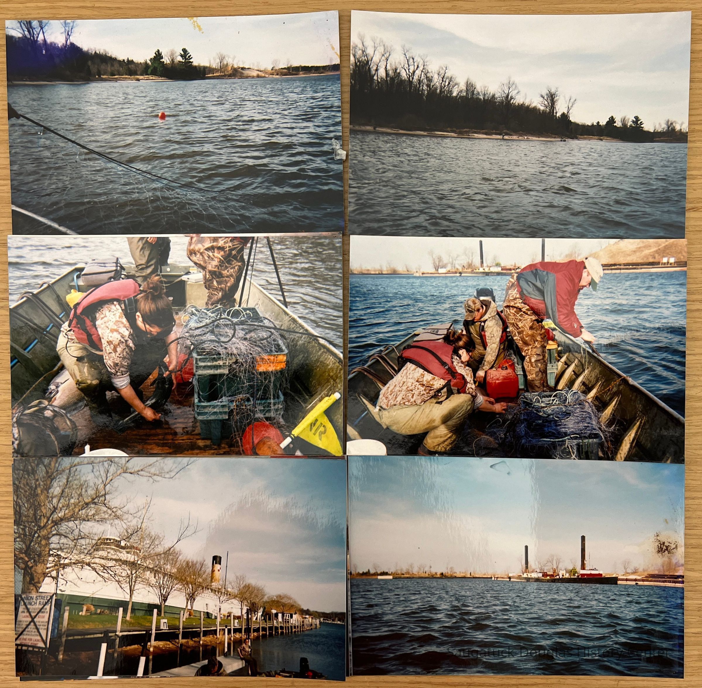 Envelope of nine photos (developed in 2010) of camo-clad people netting fish in Kalamazoo Lake and the Red Dock/Keewatin boat launch to survey sturgeon populations.