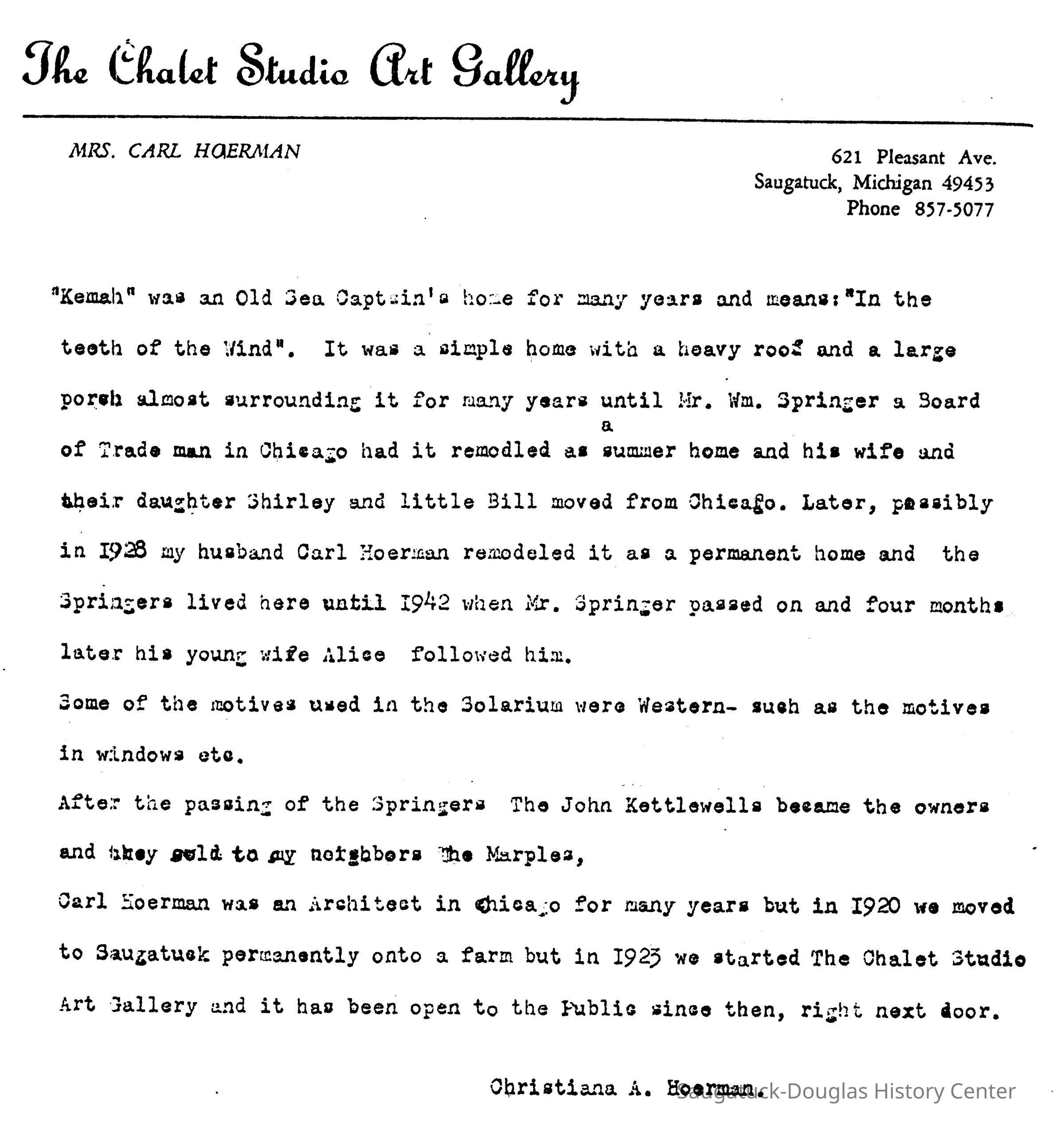 Kemah Cottage b.1906-, Hoerman, Carl 1885-1955, Springer, William J. 1883-1941Context