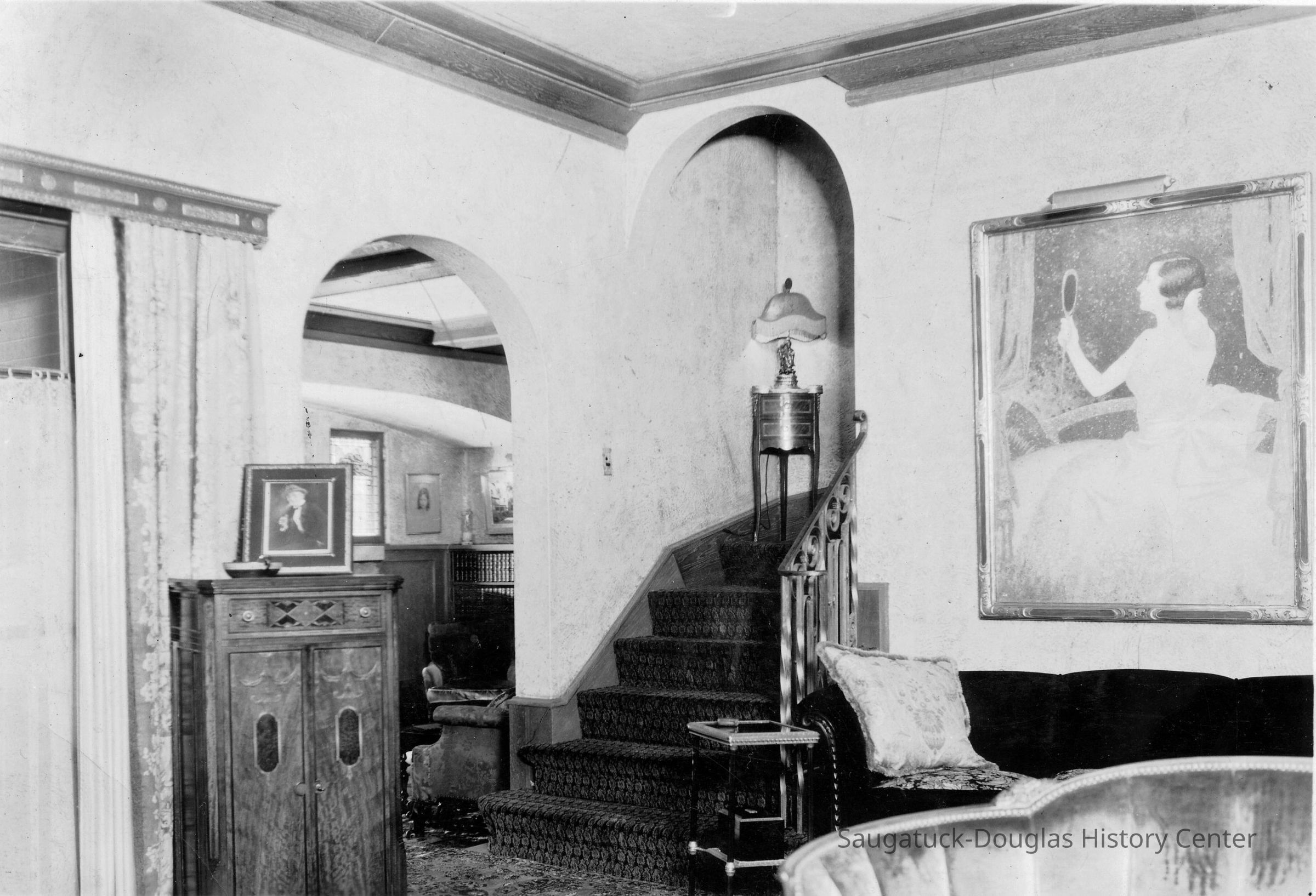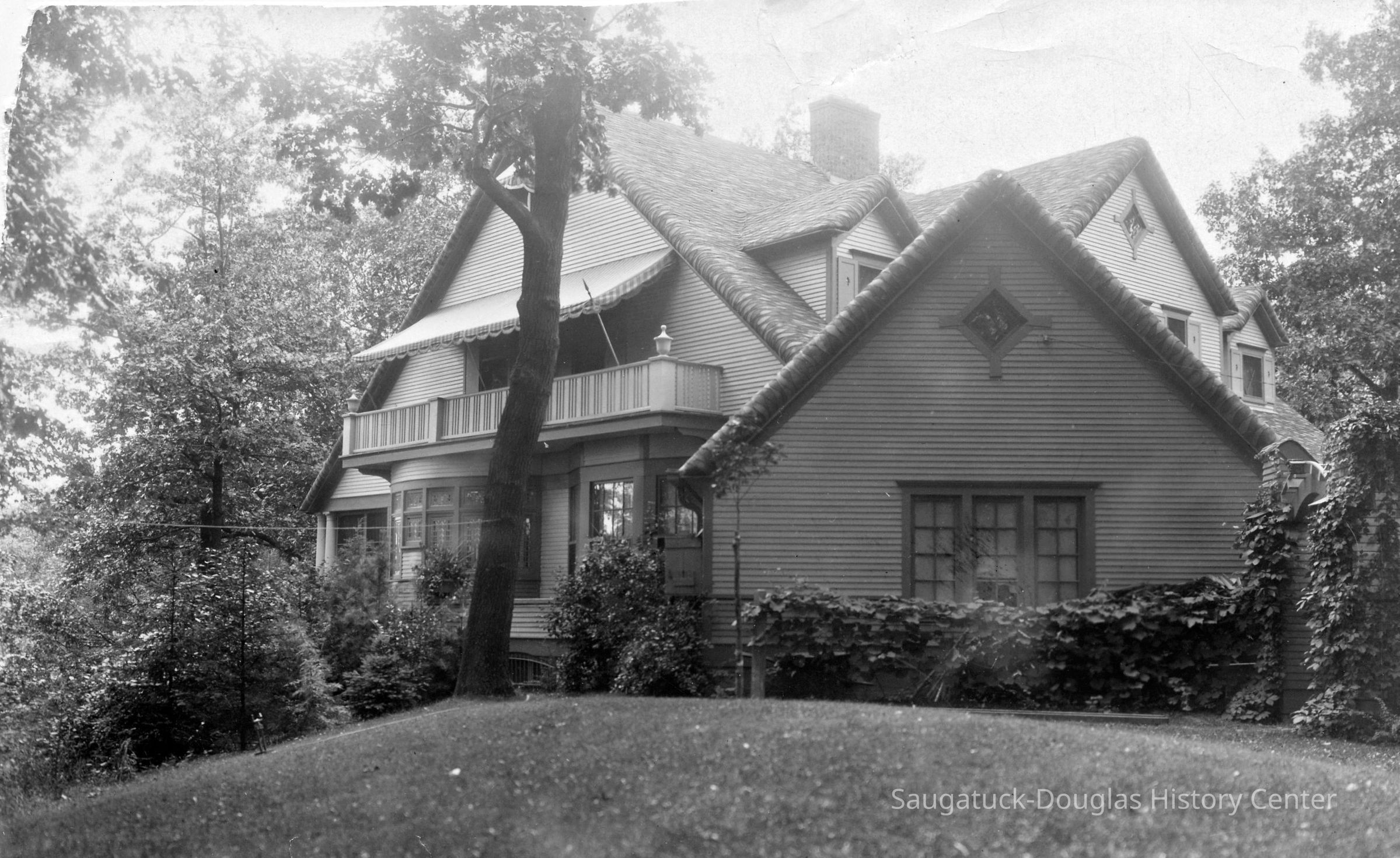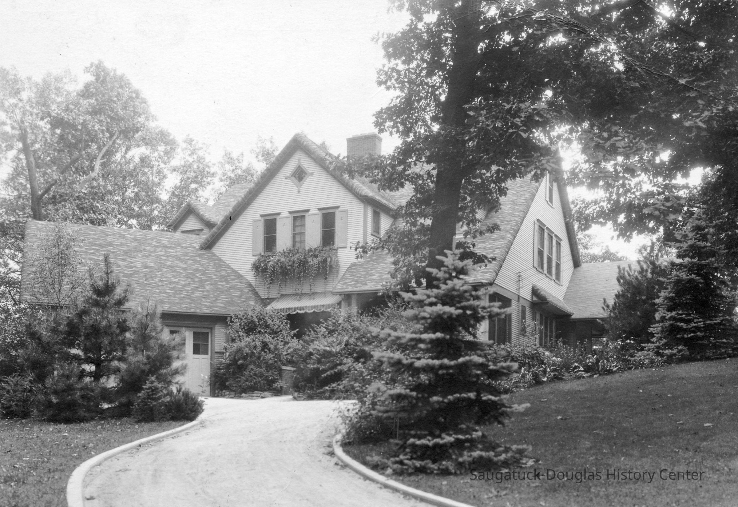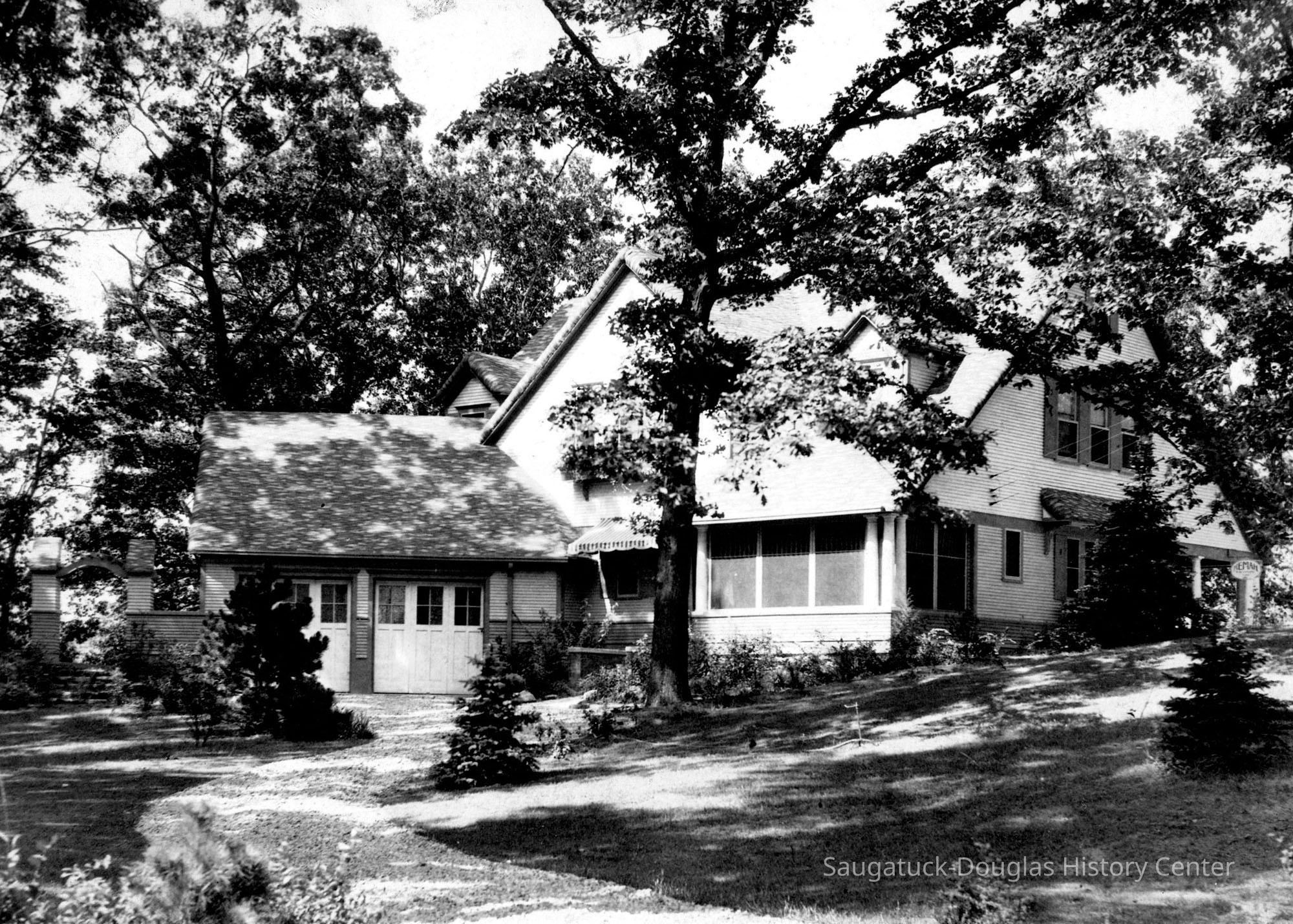 This image was featured as History Mystery #103 with the text: This former B&B on the corner of Pleasant Street and Old Allegan Road is known as "Kemah". The 1906 home was remodeled in about 1928 by architect Carl Hoerman, who lived next door.