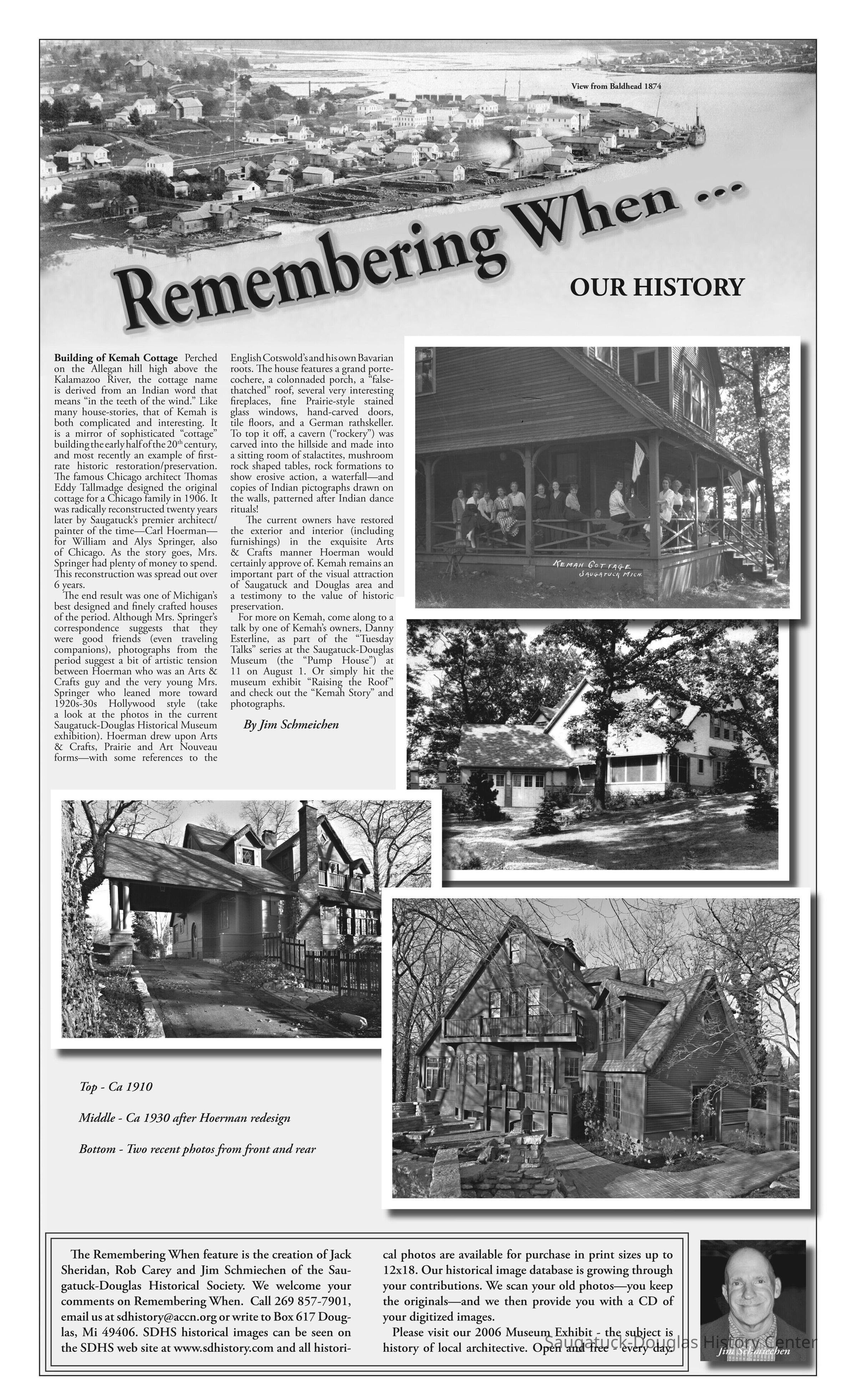 For more on Kemah, come along to a talk by one of Kemah’s owners, Danny Esterline, as part of the “Tuesday Talks” series at the Saugatuck-Douglas Museum (the “Pump House”) at 11 on August 1. Or simply hit the museum exhibit “Raising the Roof” and check out the “Kemah Story” and photographs.