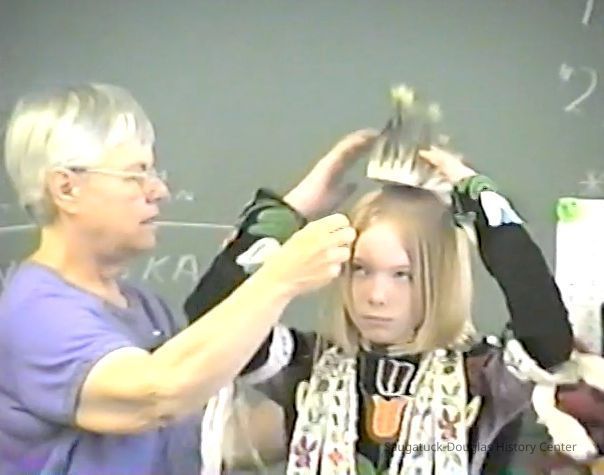 Video recording of 4/16/2003 presentation by Kit Lane about Native American life ways to Wendy Colsen's Douglas Elementary 3rd grade class.