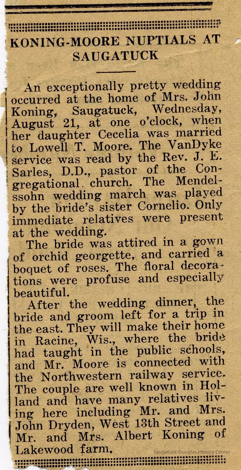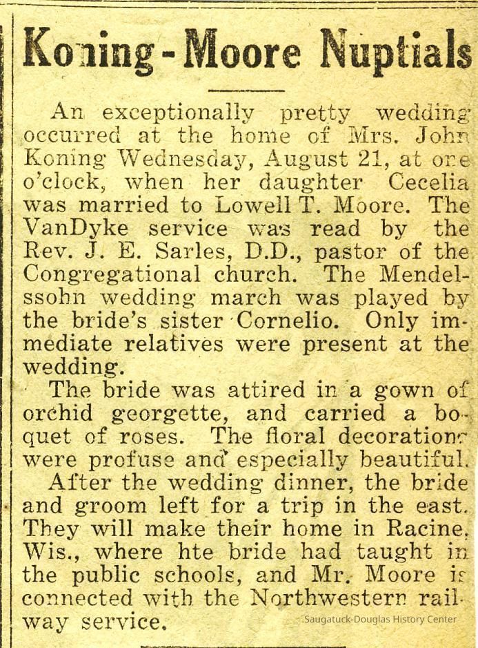 Moore, Cecelia M (Koning) 1895-1967Acquisition