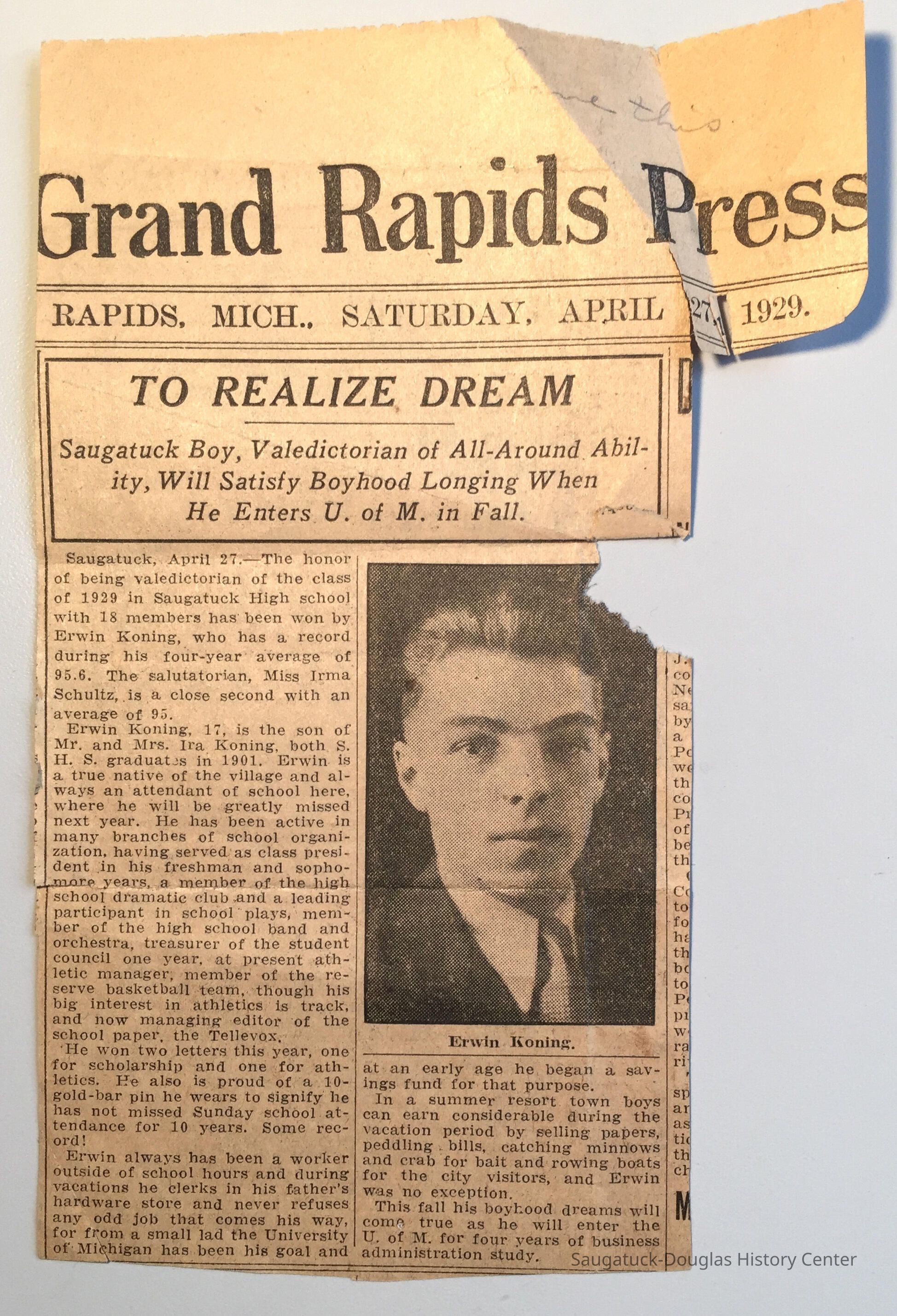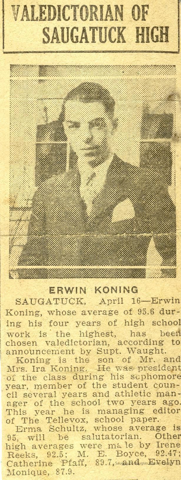 Photo and mention that Erwin L. Koning was one of 1000 young men invited to study economic and governmental problemCreator