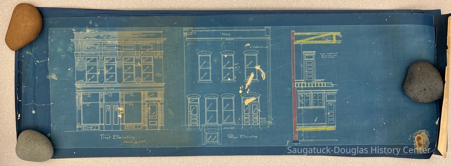 Original plans for the rebuilding the hardware store at 439 Butler Street in Saugatuck after the original structure was destroyed by fire.Collection